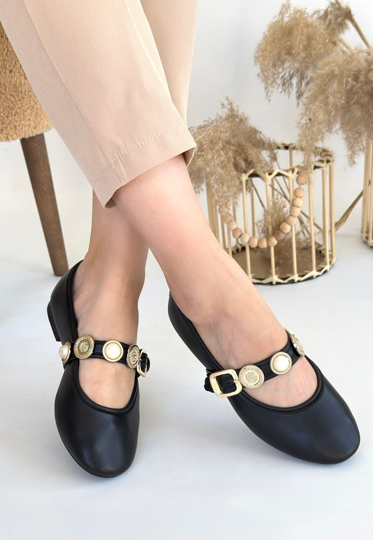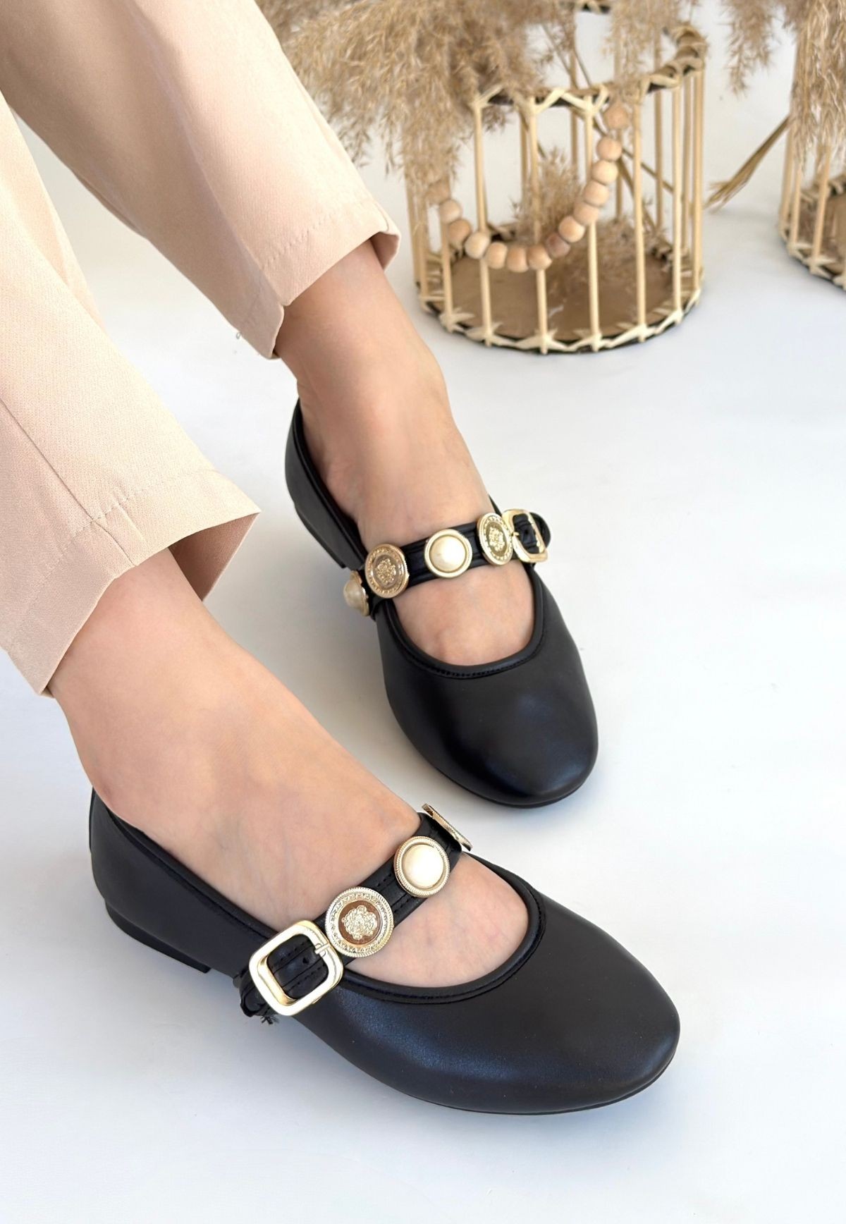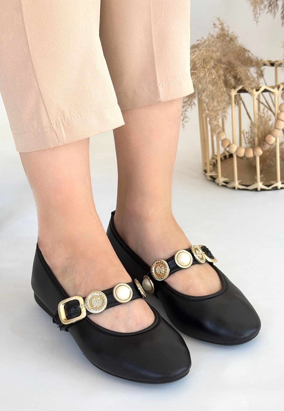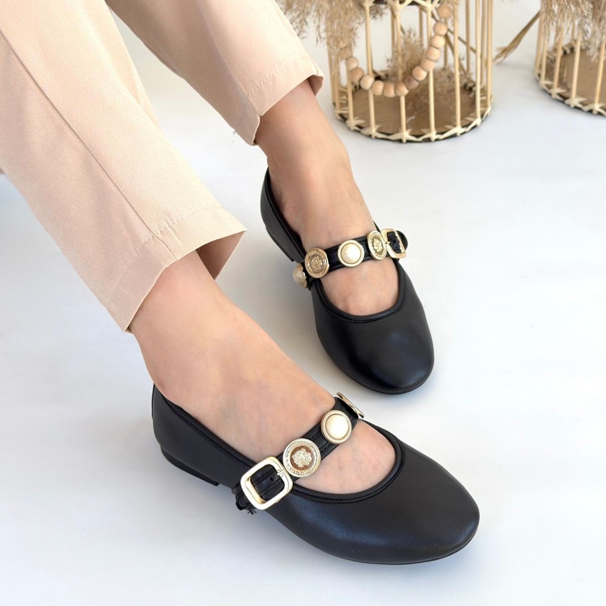 Babet Atnis Siyah Cilt Babet Ayakkabı