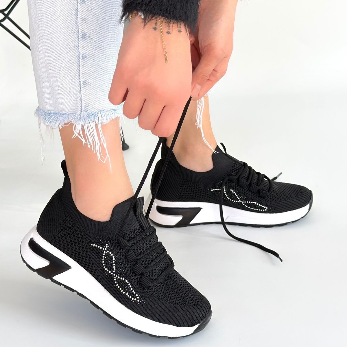 • Belan Siyah Triko Bağcıklı Spor Ayakkabı