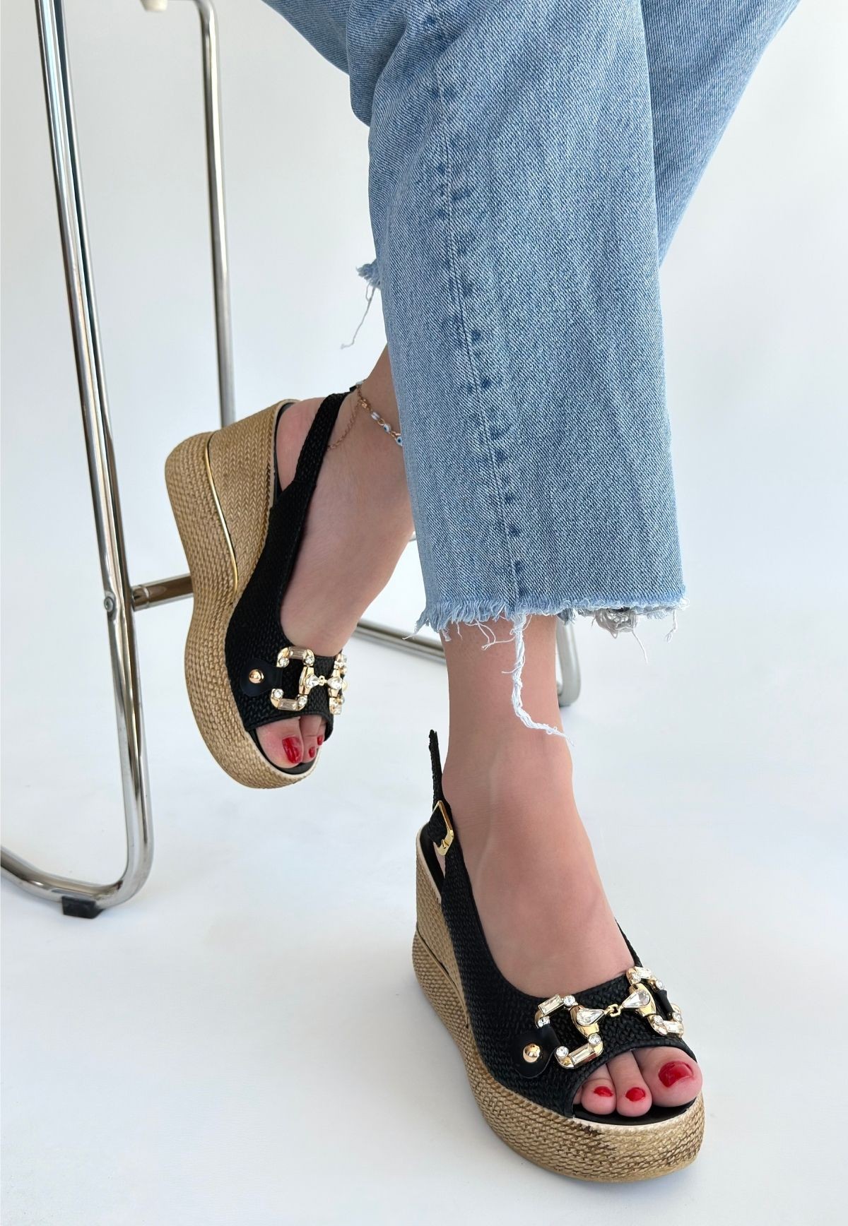 Caver Siyah Cilt Dolgu Topuk Sandalet
