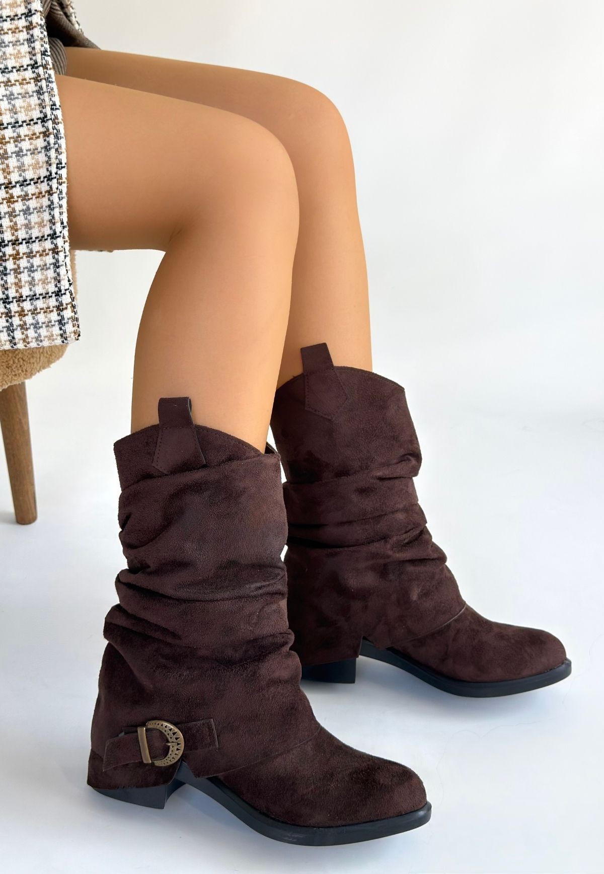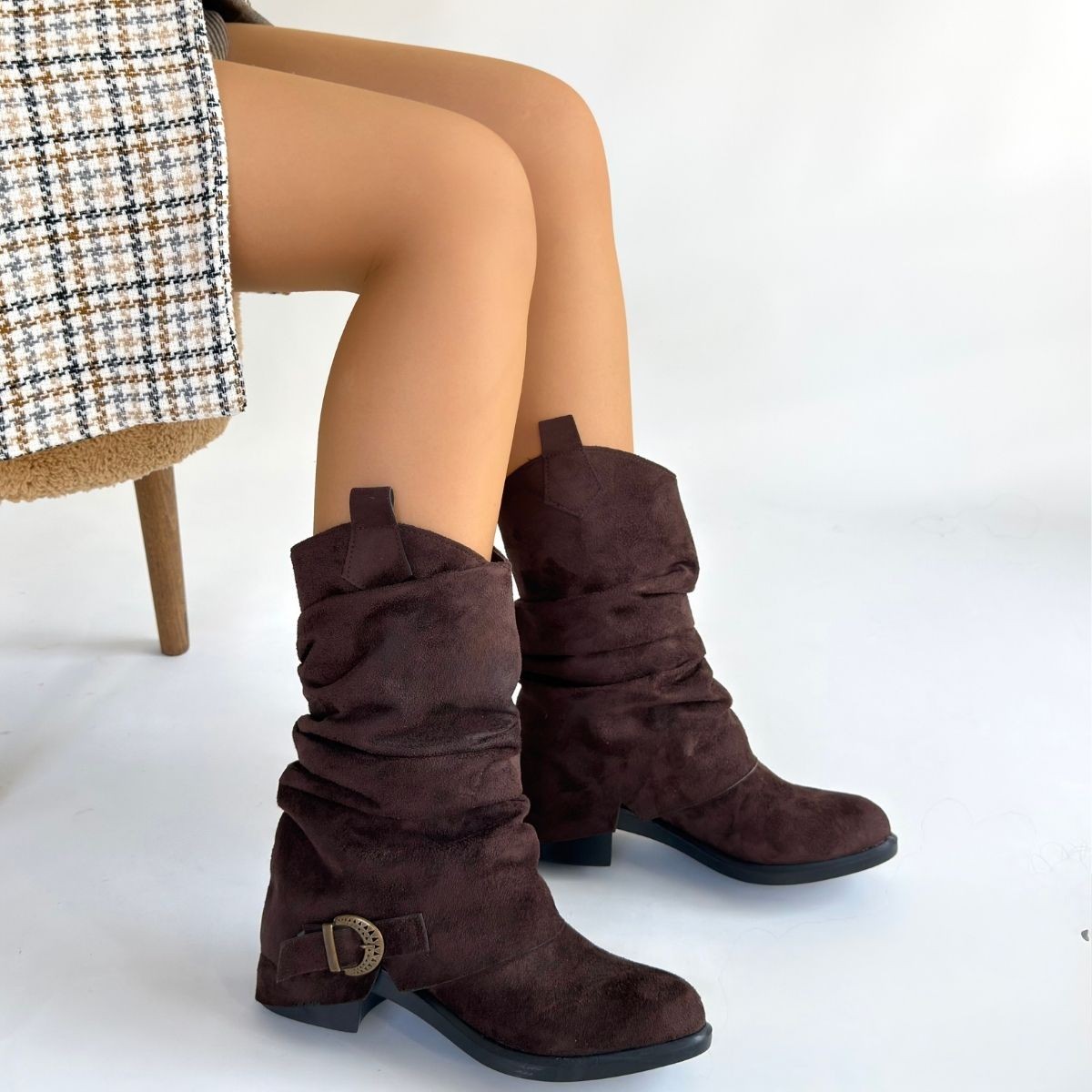 Çizme Canty Kahverengi Süet Körüklü Topuklu Çizme