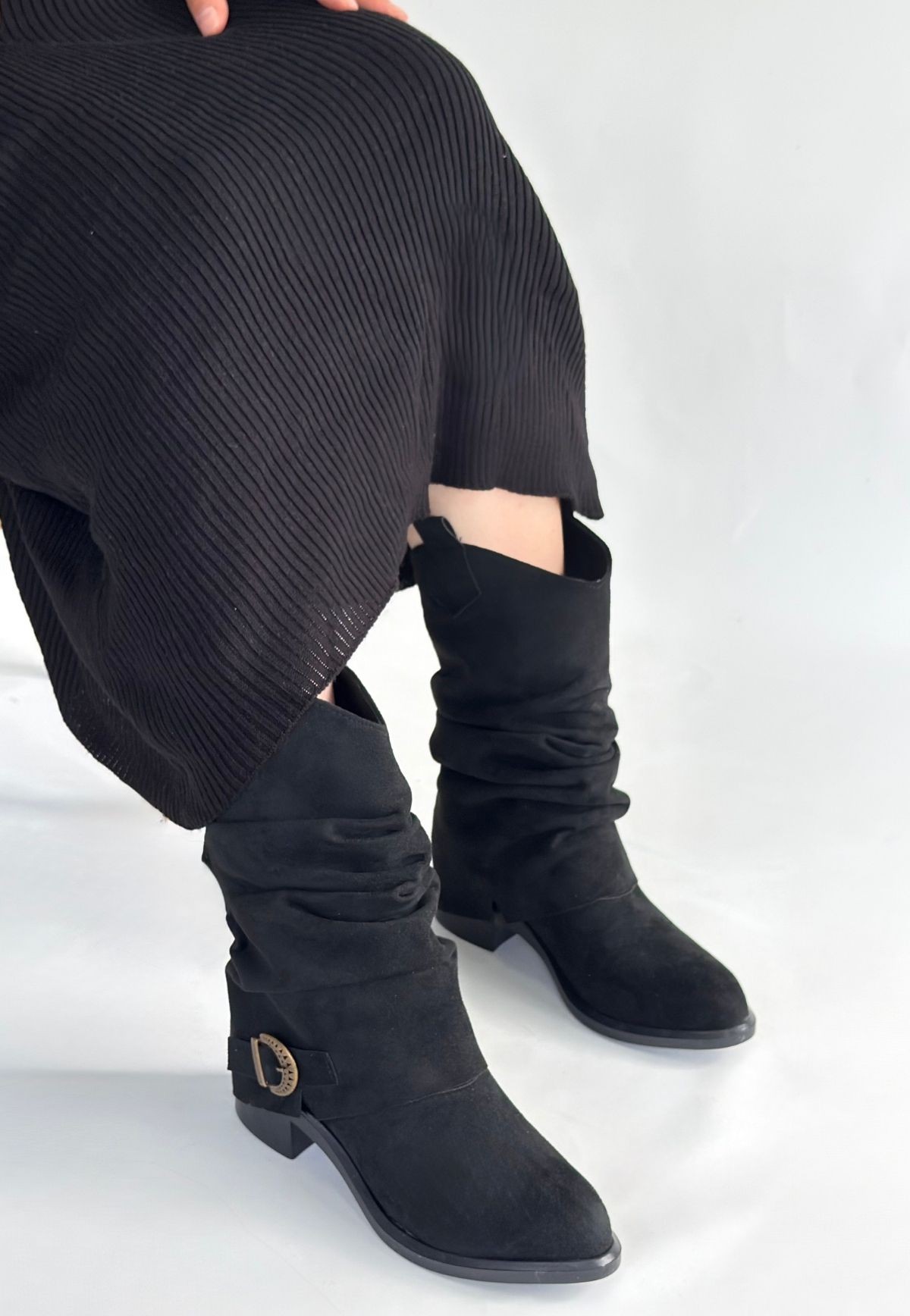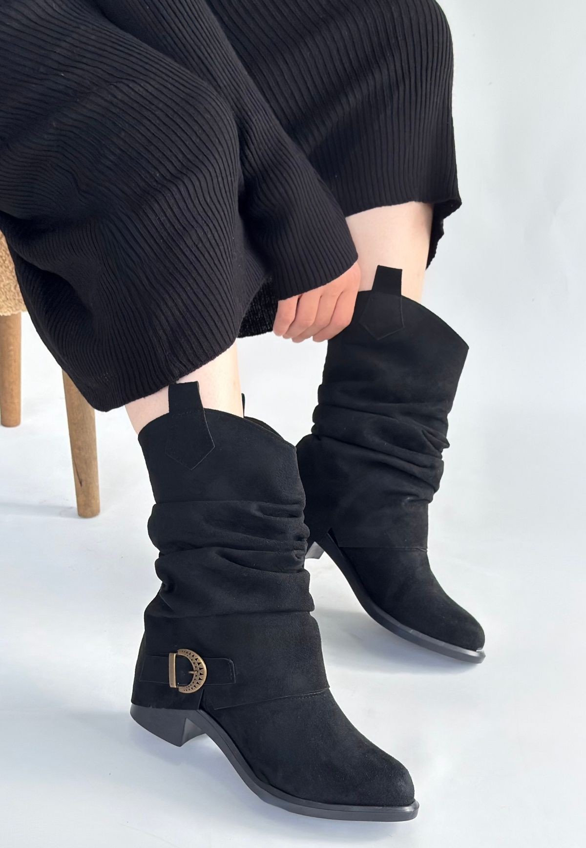 Çizme Canty Siyah Süet Körüklü Topuklu Çizme