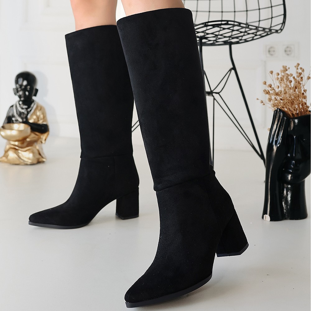 Çizme Roksa Siyah Süet Topuklu Çizme