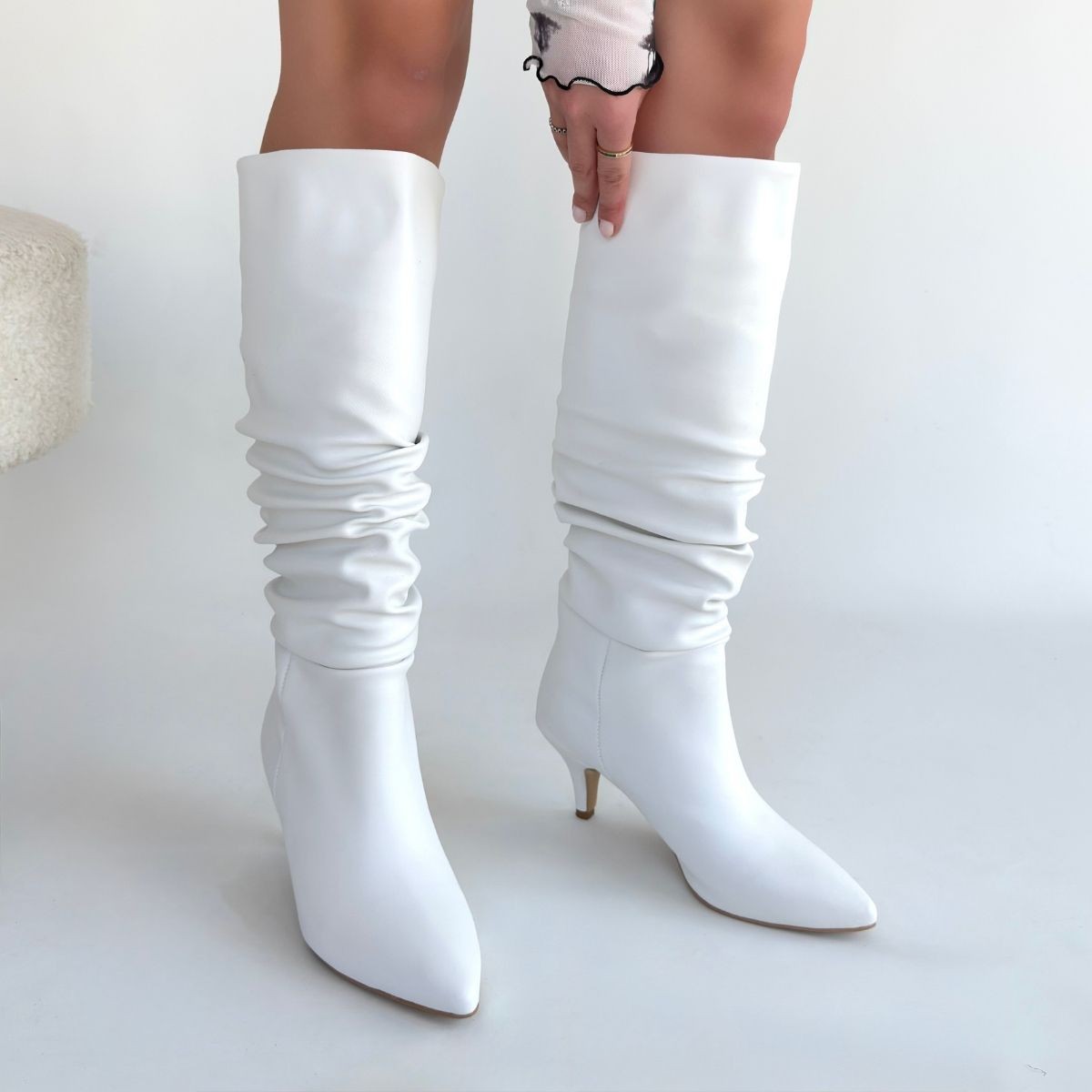 Zelya Beyaz Cilt Topuklu Çizme