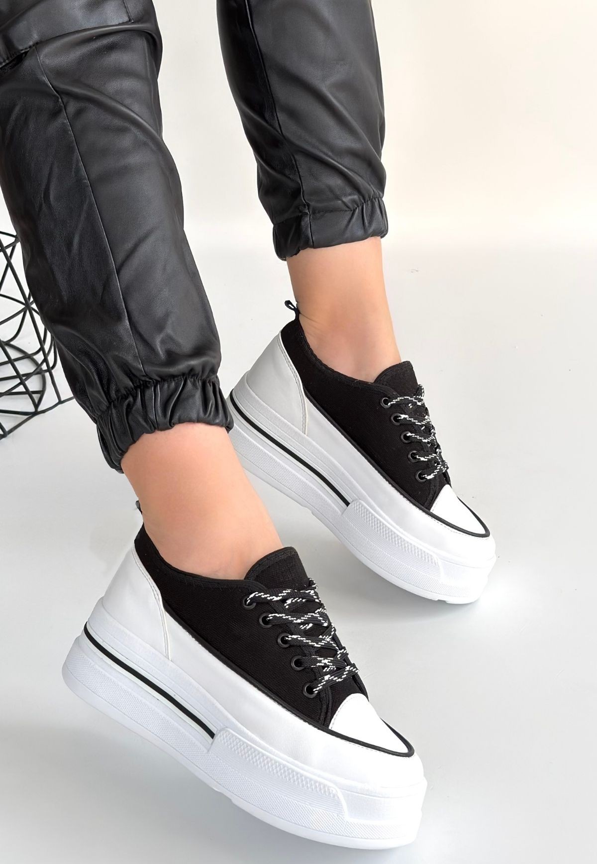 • Dalen Siyah Keten Bağcıklı Spor Ayakkabı