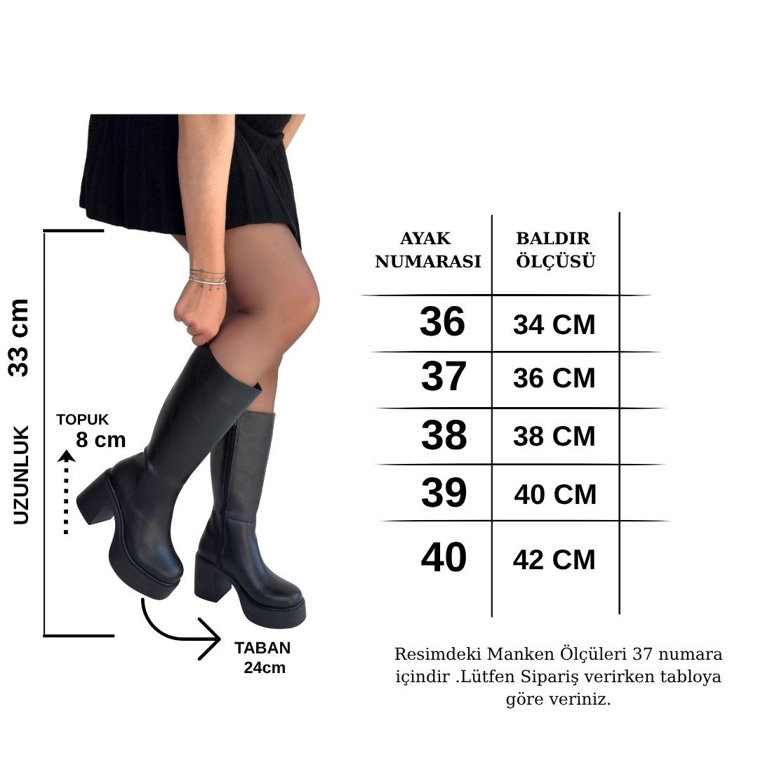 Disan Siyah Cilt Topuklu Çizme
