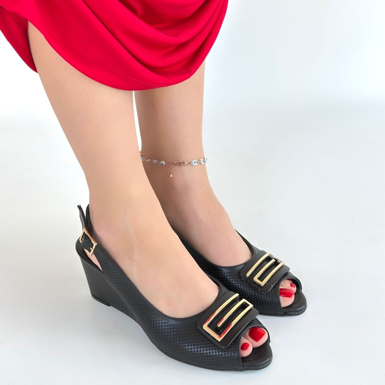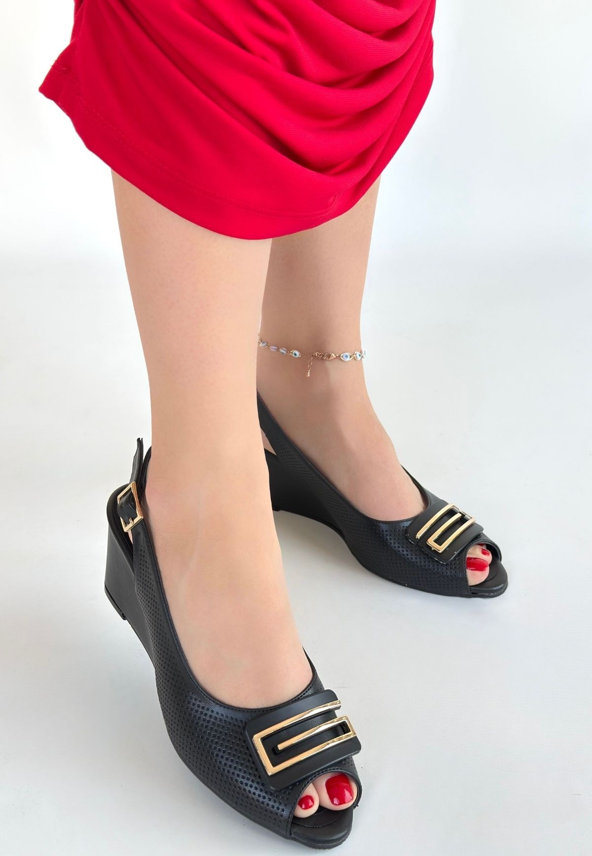 Dolgu Topuk Mamba Siyah Cilt Dolgu Topuk Ayakkabı
