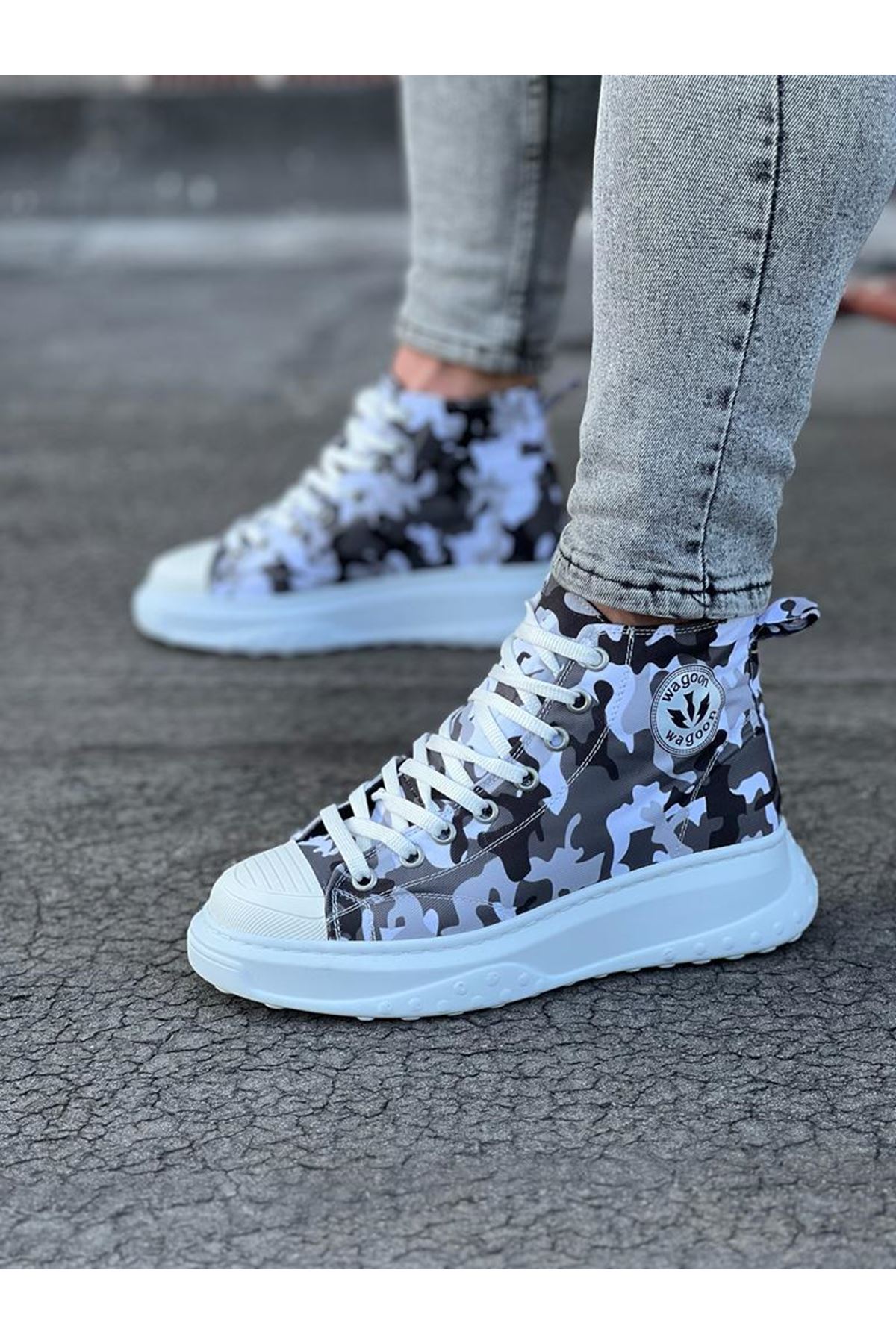Erkek Ayakkabı YÜKSEK TABAN WG017 Beyaz Askeri Yarım Bilek Casual Ayakkabı
