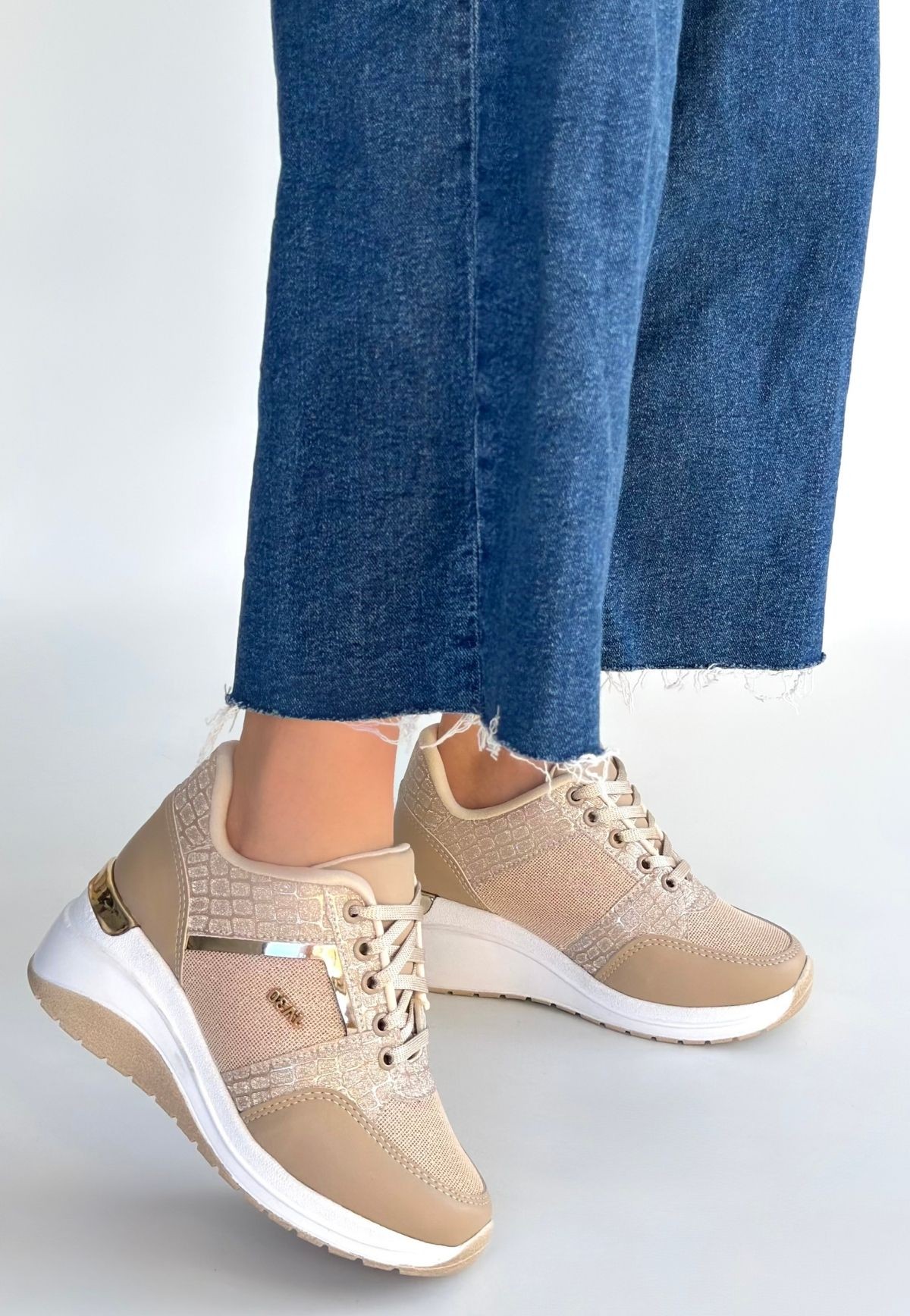 Geja Bej Cilt Bağcıklı Spor Ayakkabı
