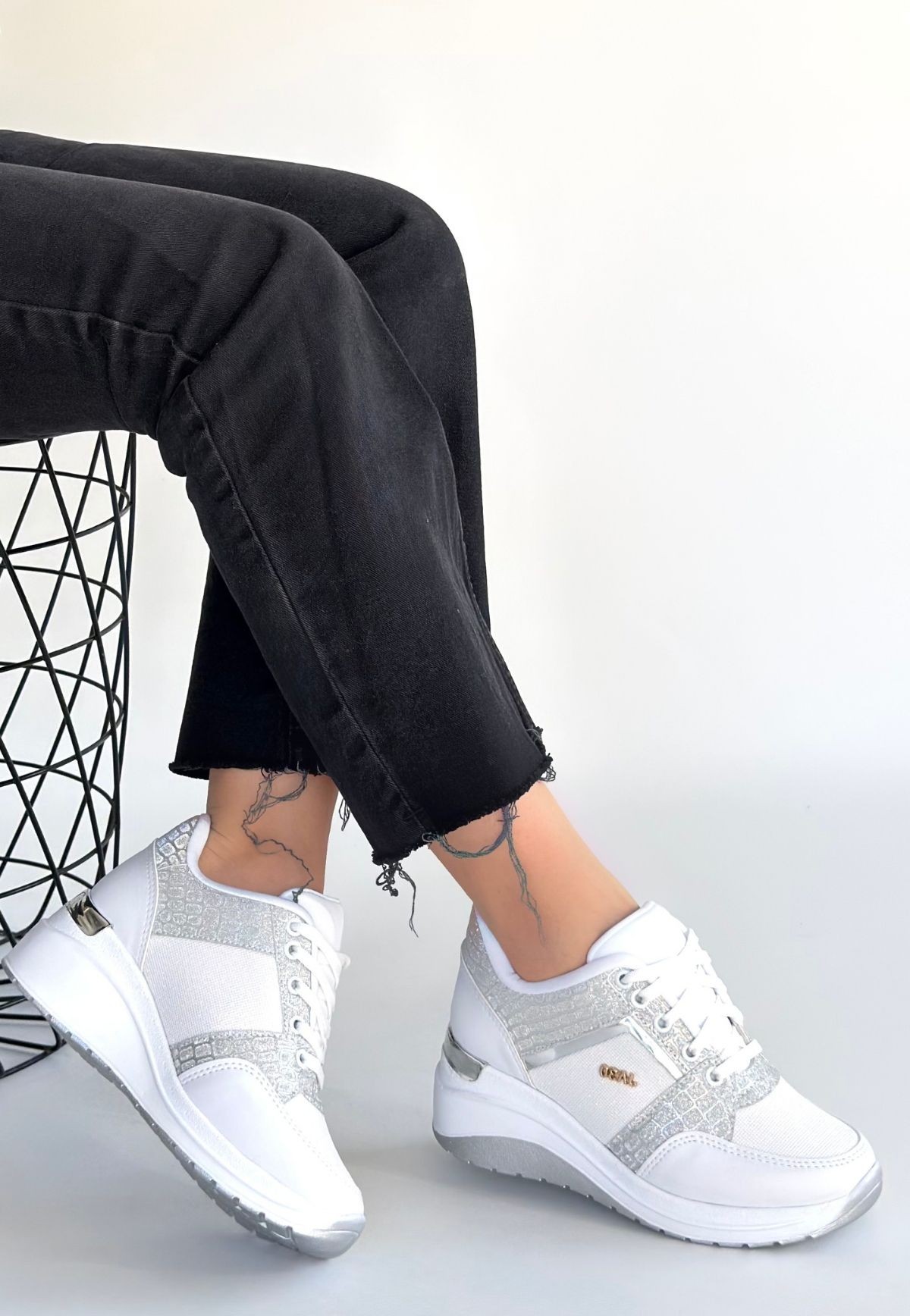 • Geja Beyaz Cilt Bağcıklı Spor Ayakkabı