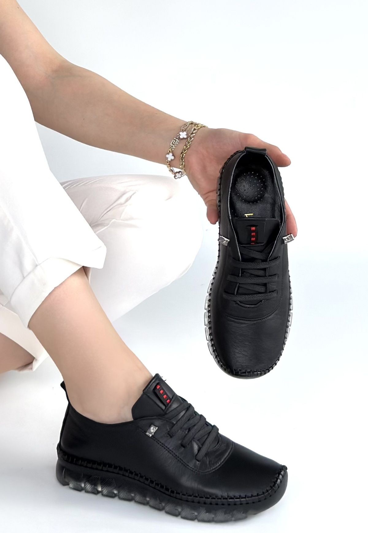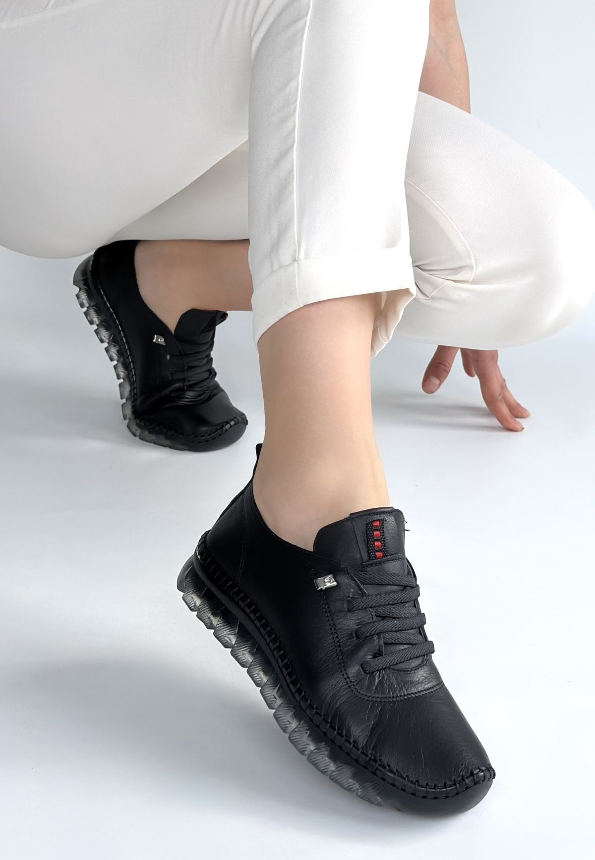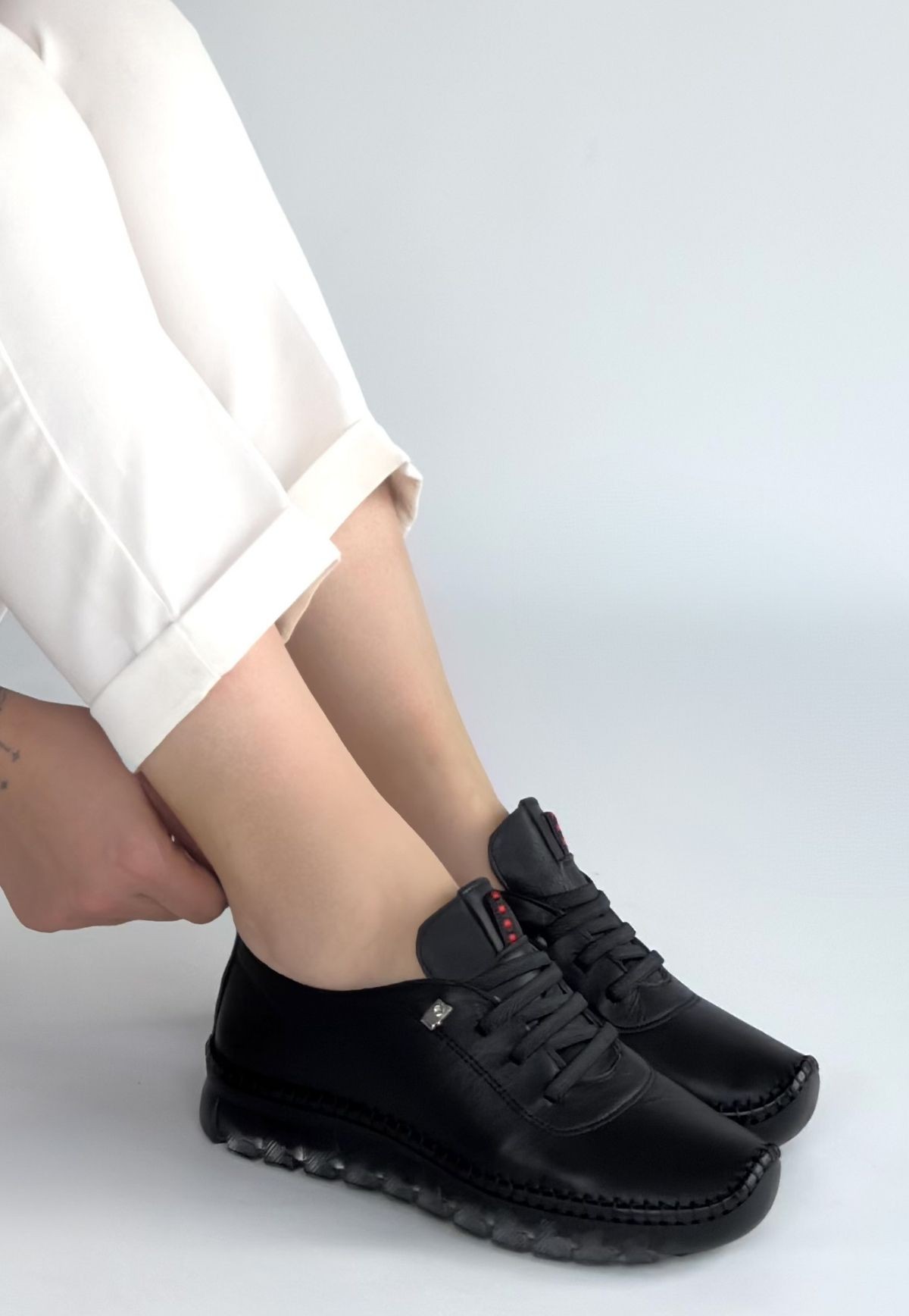 • Jiten Siyah Deri Bağcıklı Spor QAyakkabı