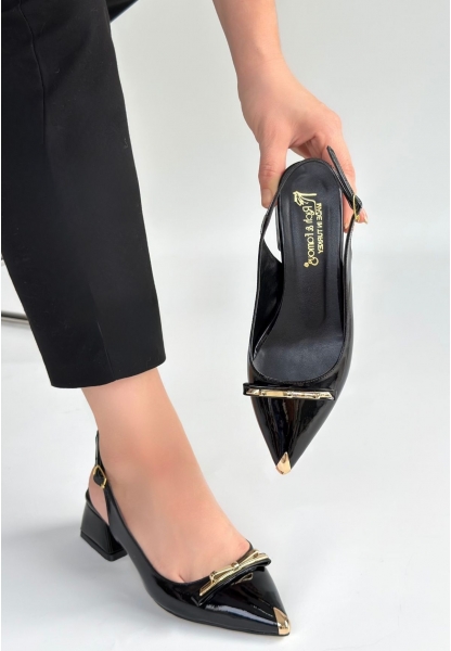 • Joga Siyah Cilt Simli Topuklu Ayakkabı