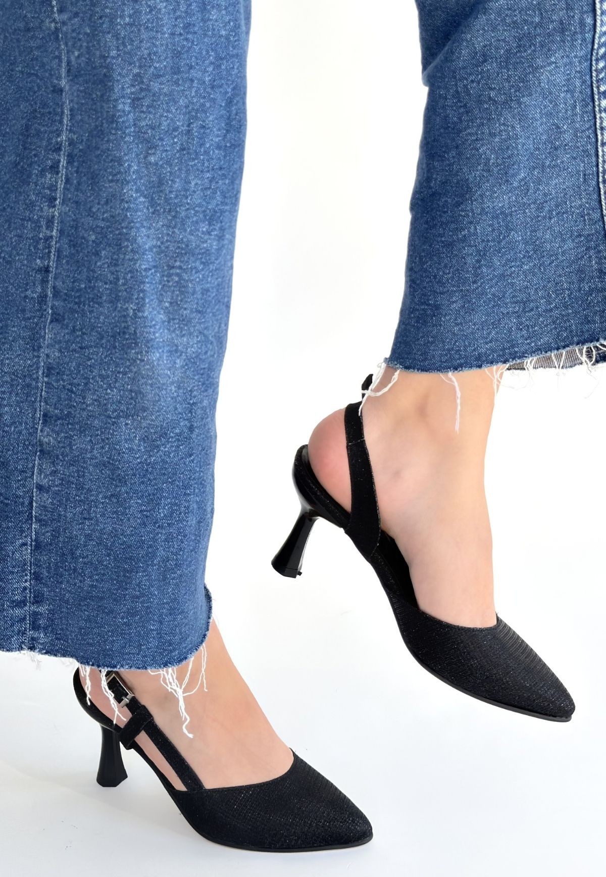Joga Siyah Saten Simli Topuklu Ayakkabı