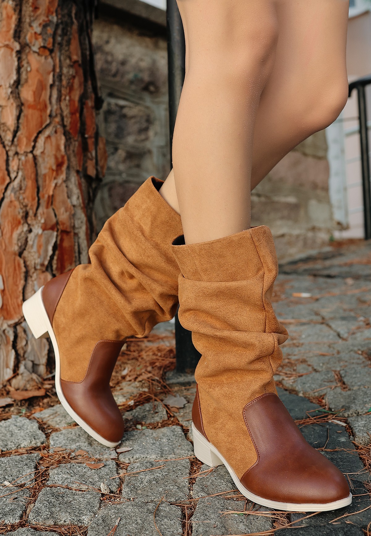 • Jolin Taba Cilt Süet Detaylı Çizme
