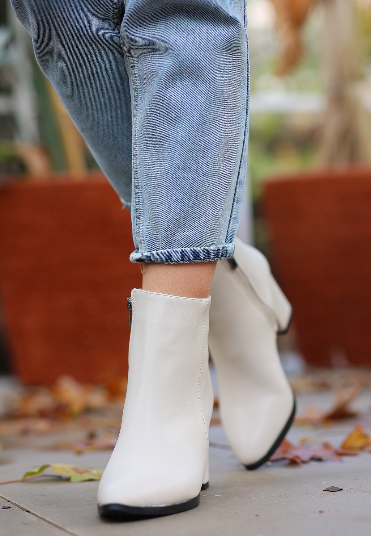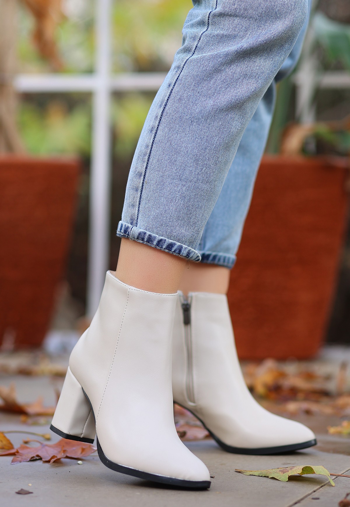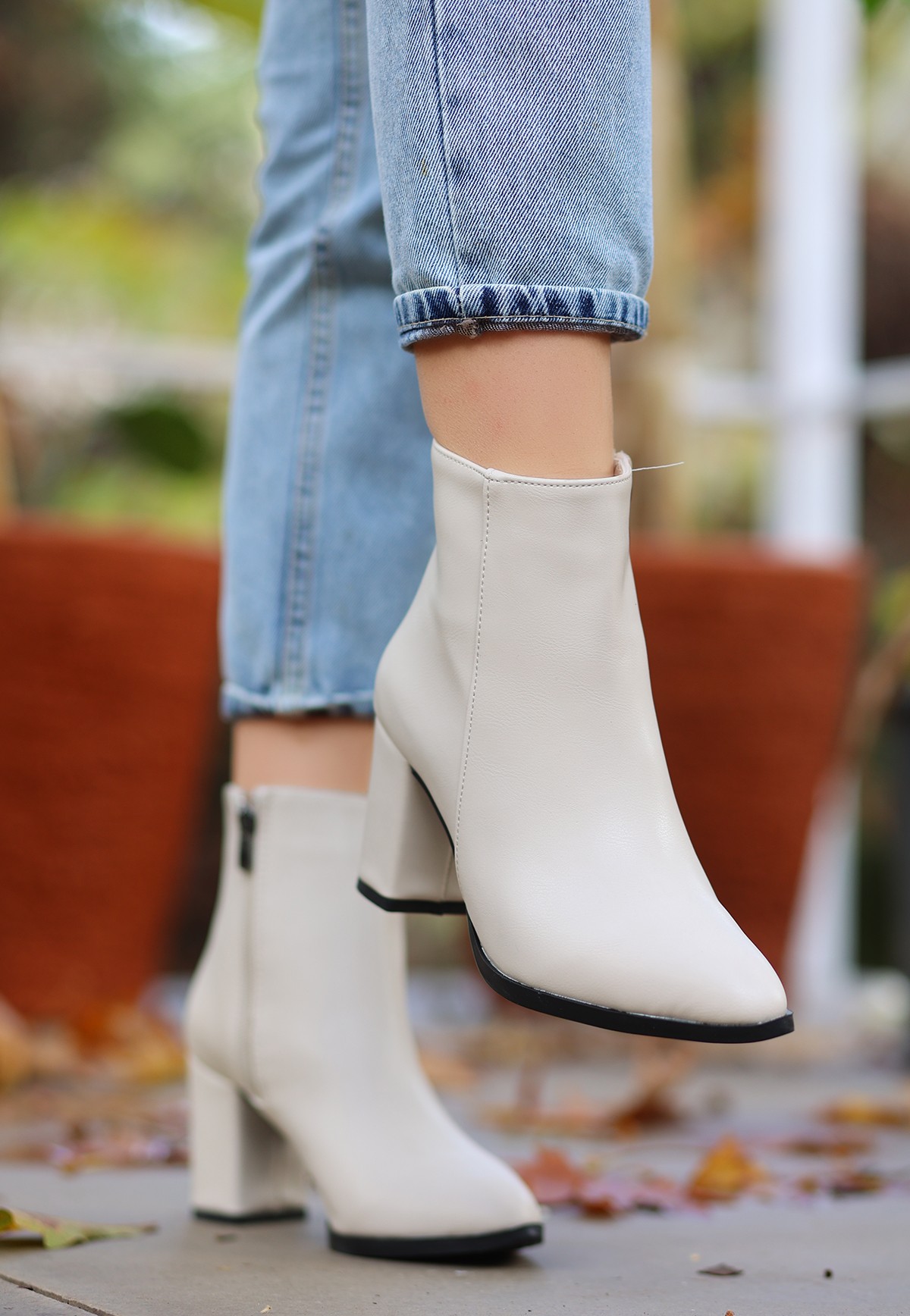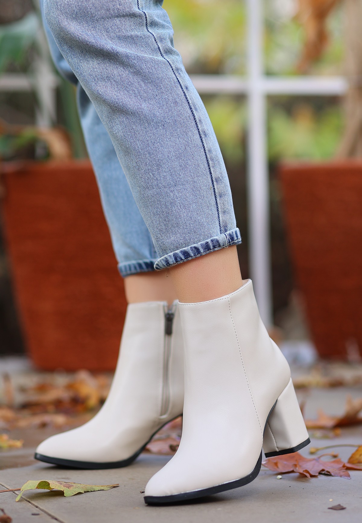 Kadın Bot Biya Bej Cilt Topuklu Bot