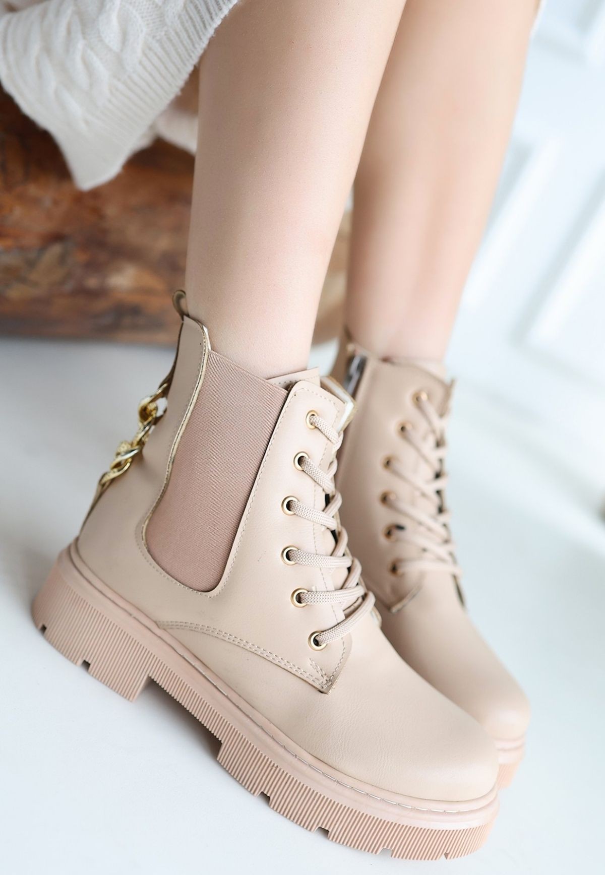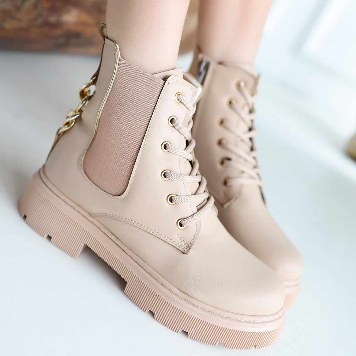 Kadın Bot Harte Nude Cilt Bağcıklı Bot