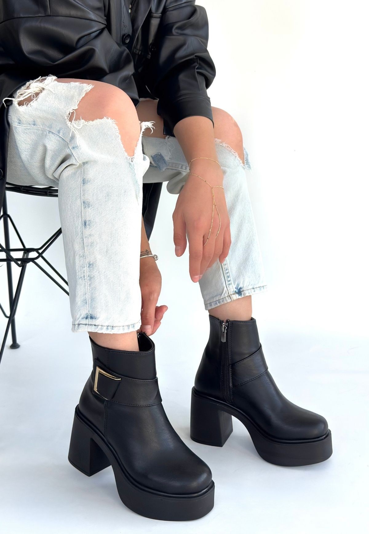 Kadın Bot Lonji Siyah Cilt Topuklu Bot