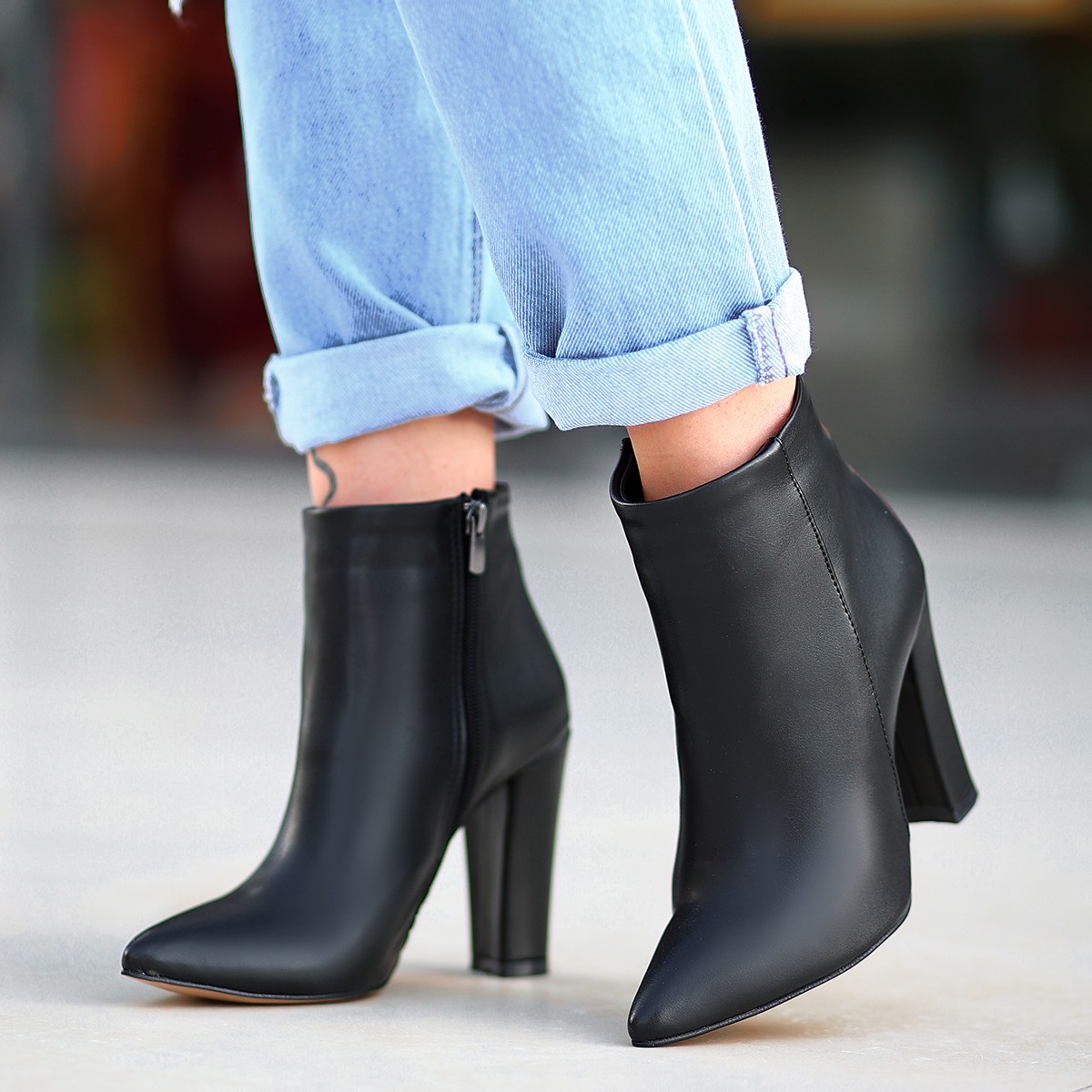 Loora Siyah Cilt Topuklu Bot