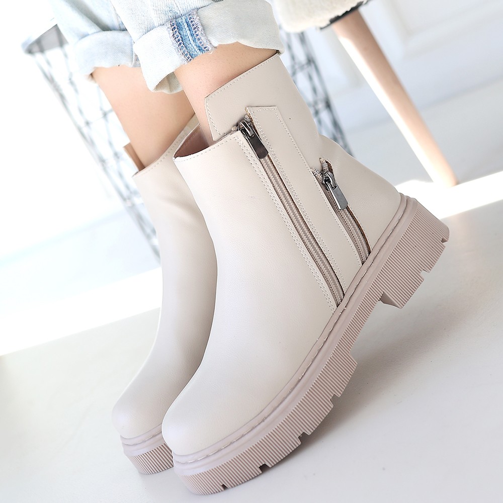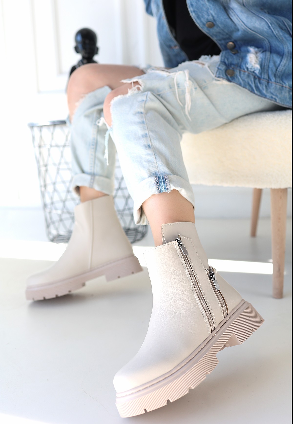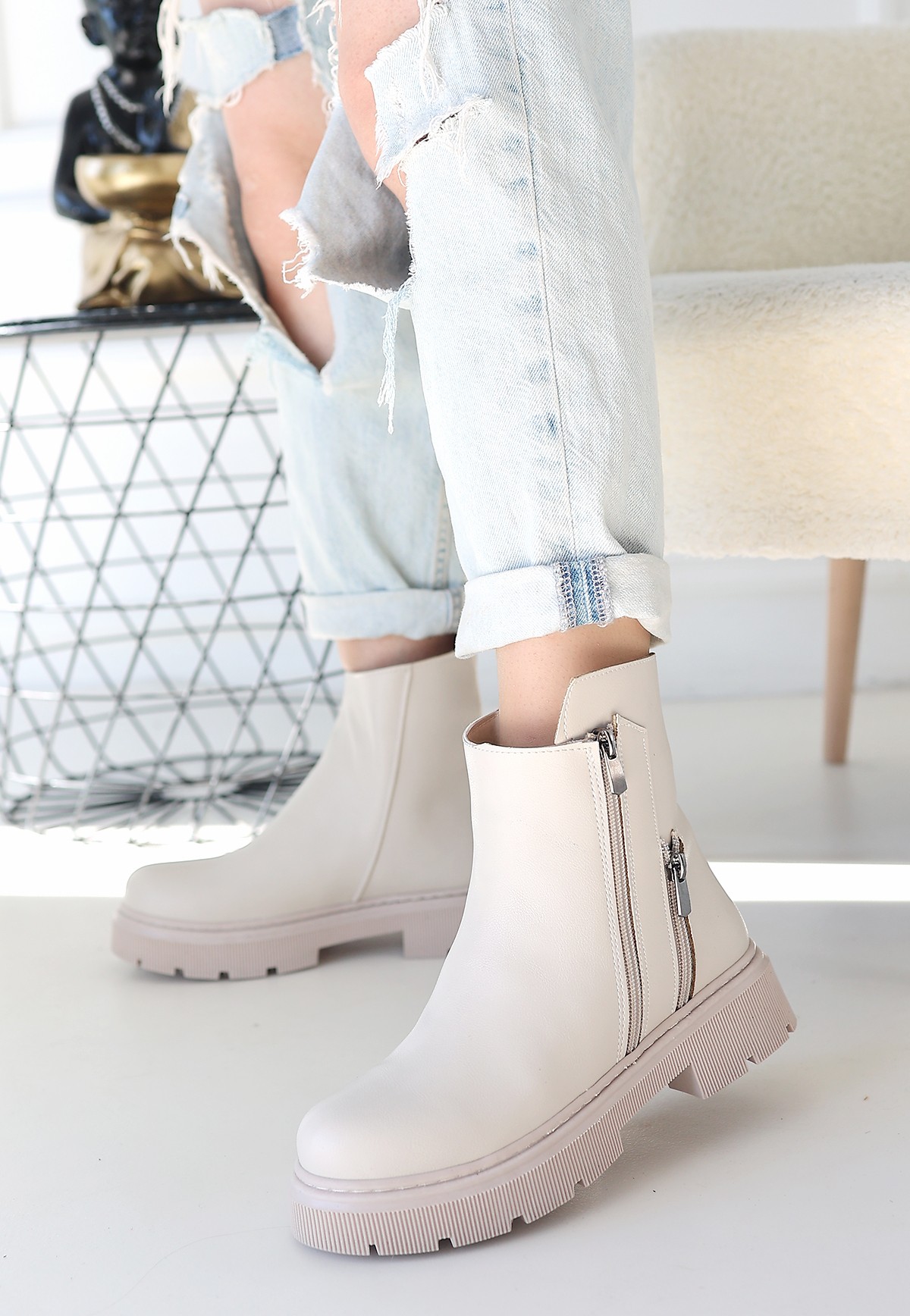 Menta Bej Cilt Fermuar Aksesuarlı Bot