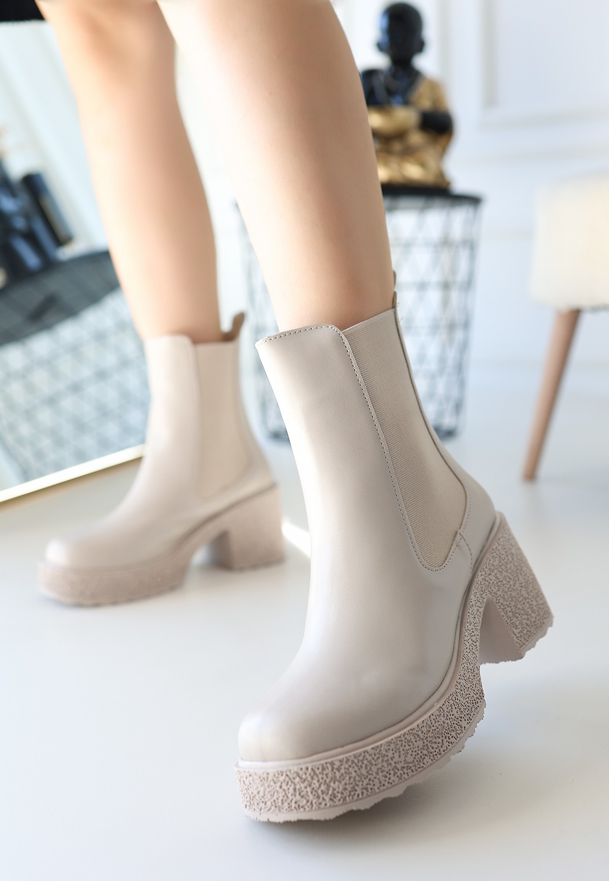 Kadın Bot Paigo Bej Cilt Topuklu Bot
