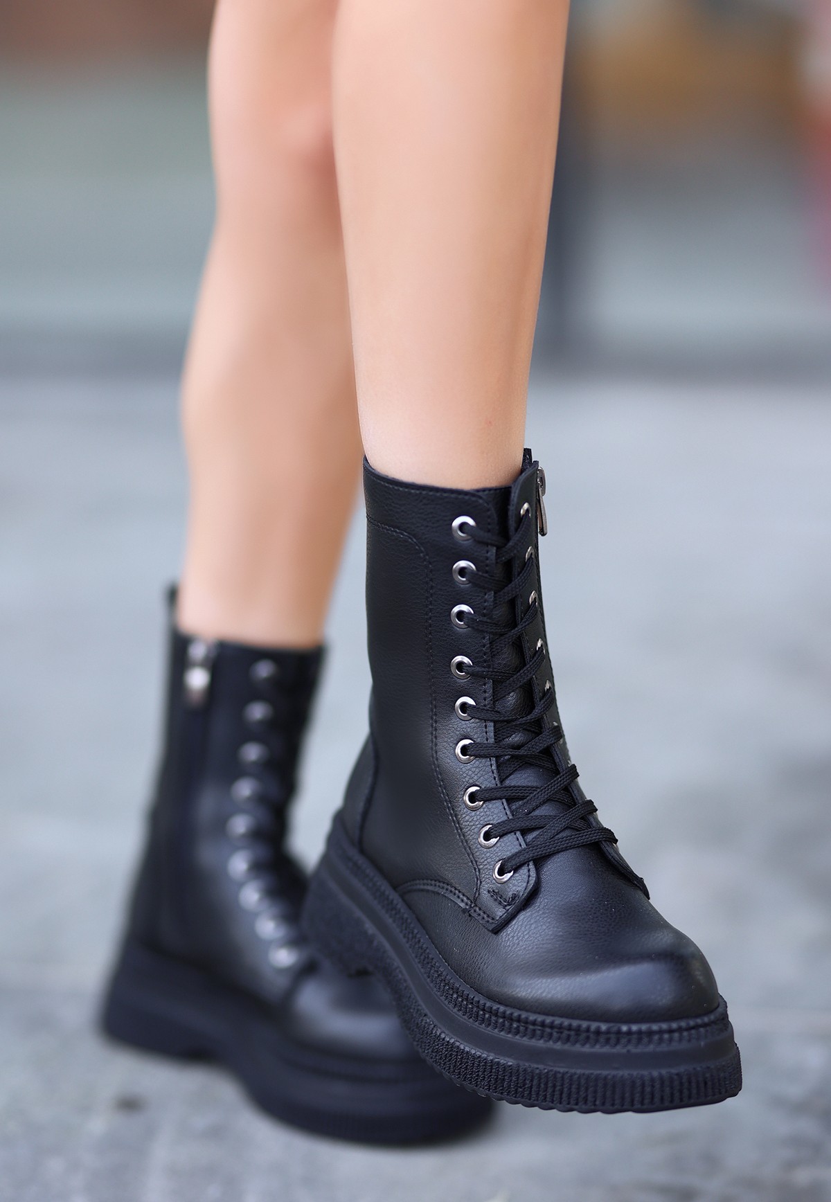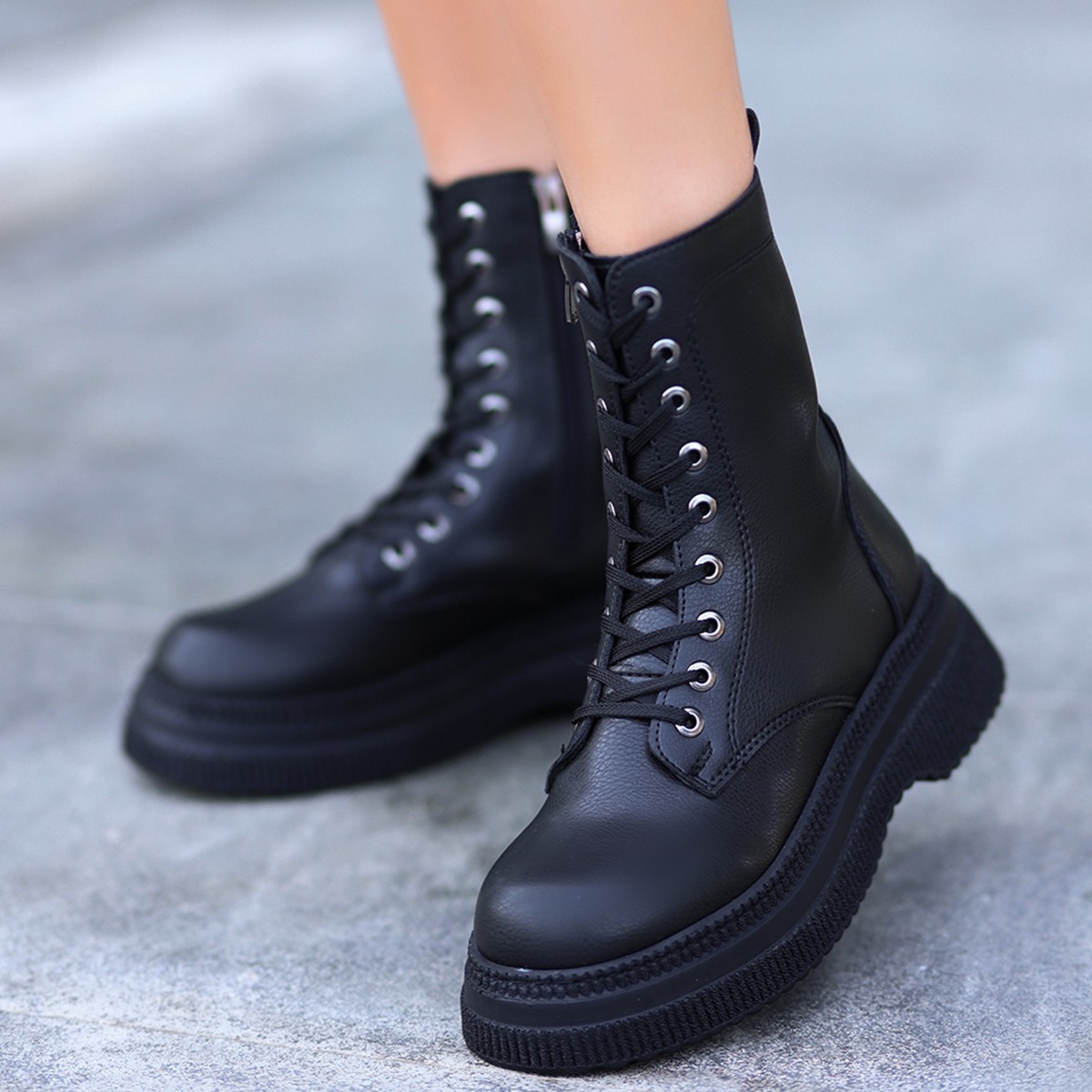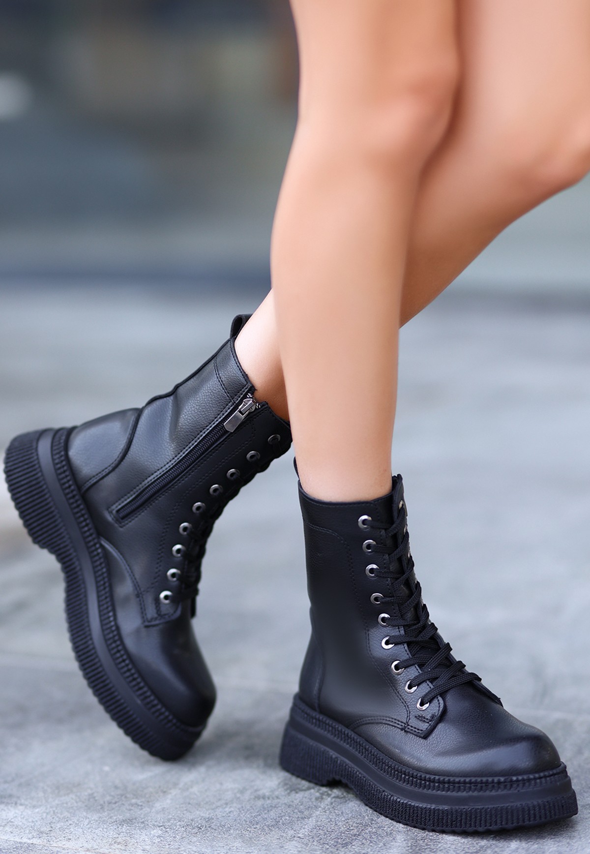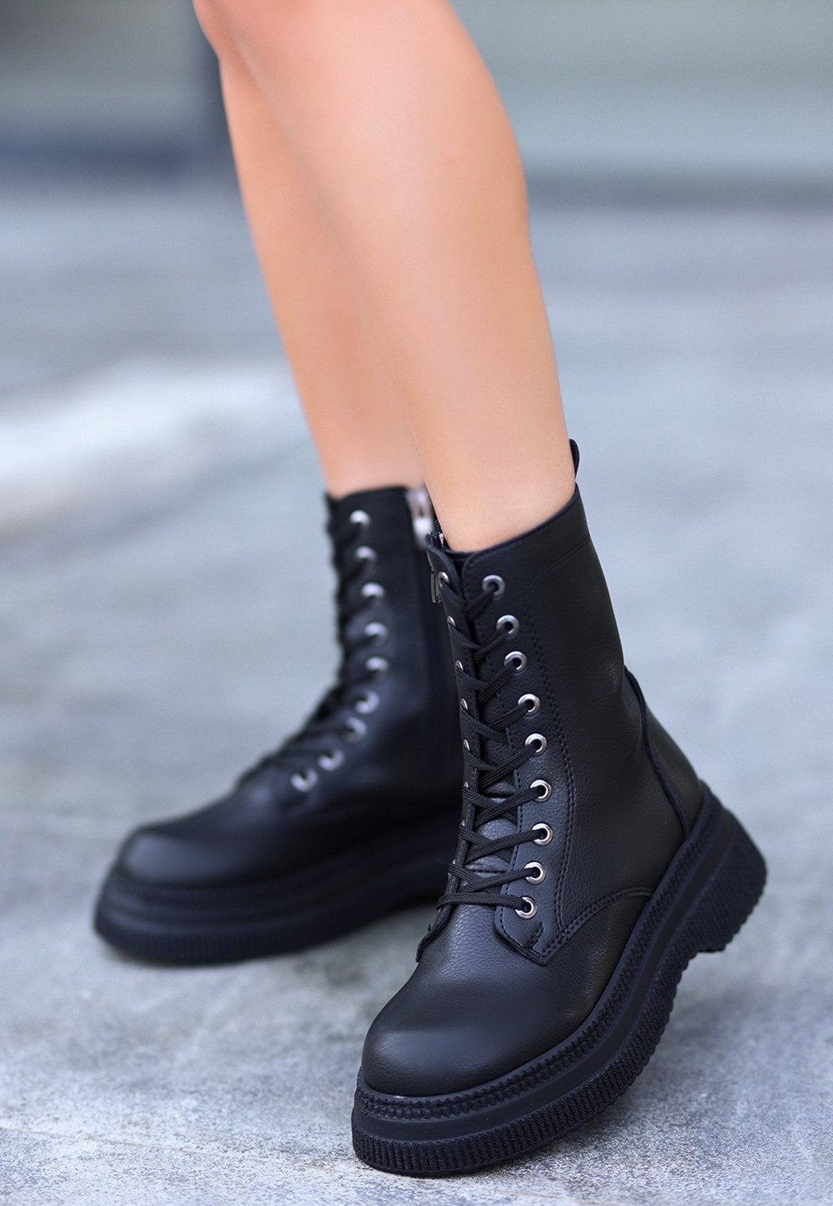 Kadın Bot Roxan Siyah Cilt Bağcıklı Bot