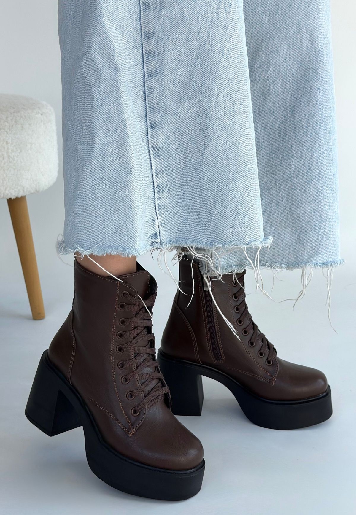 • Tsan Kahverengi Cilt Bağcıklı Topuklu Bot