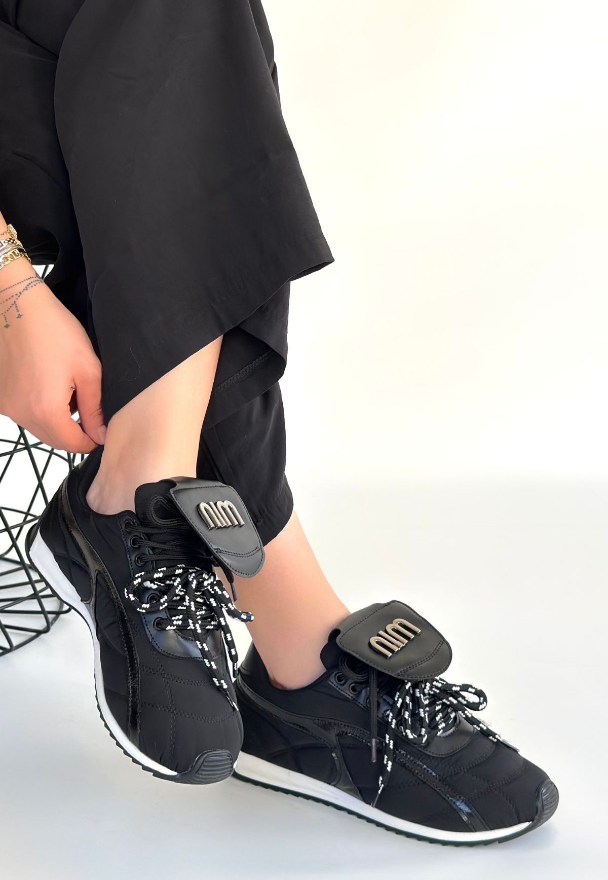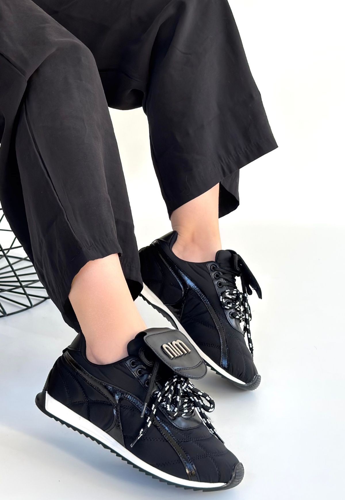 Kadın Spor Dissa Siyah Cilt Bağcıklı Paraşüt Detaylı Spor Ayakkabı