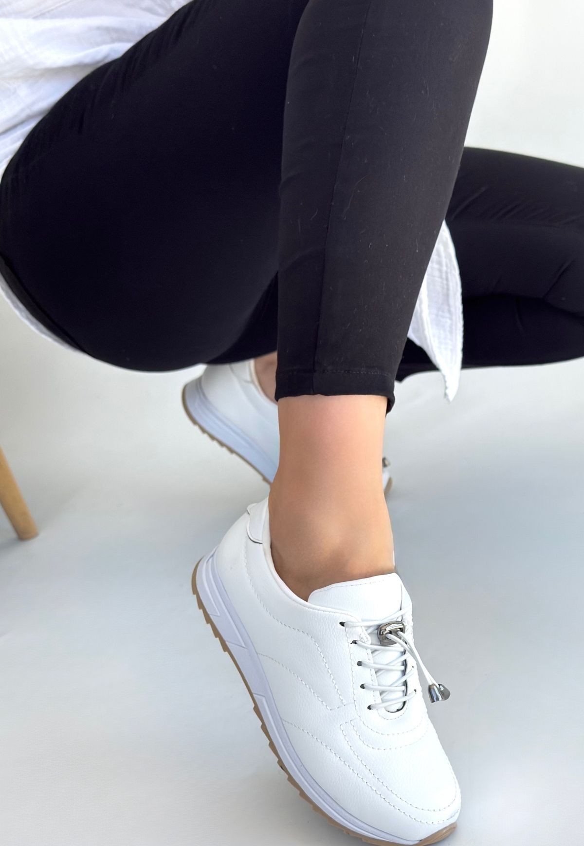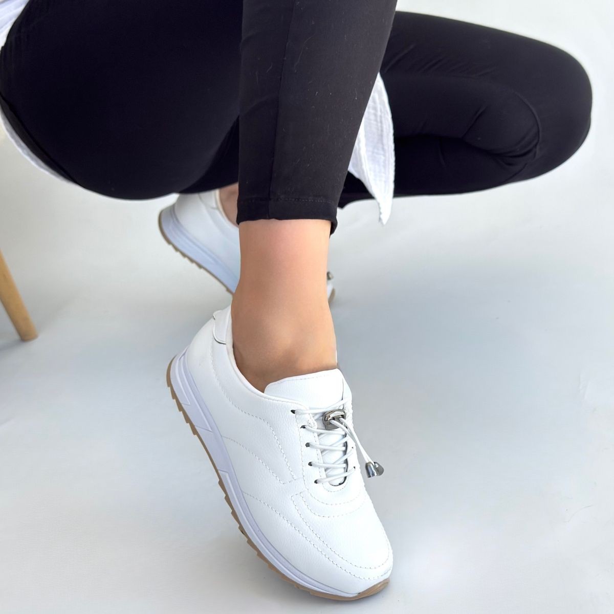 • Finna Beyaz Cilt Bağcıklı Spor Ayakkabı