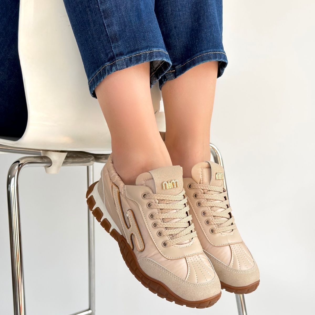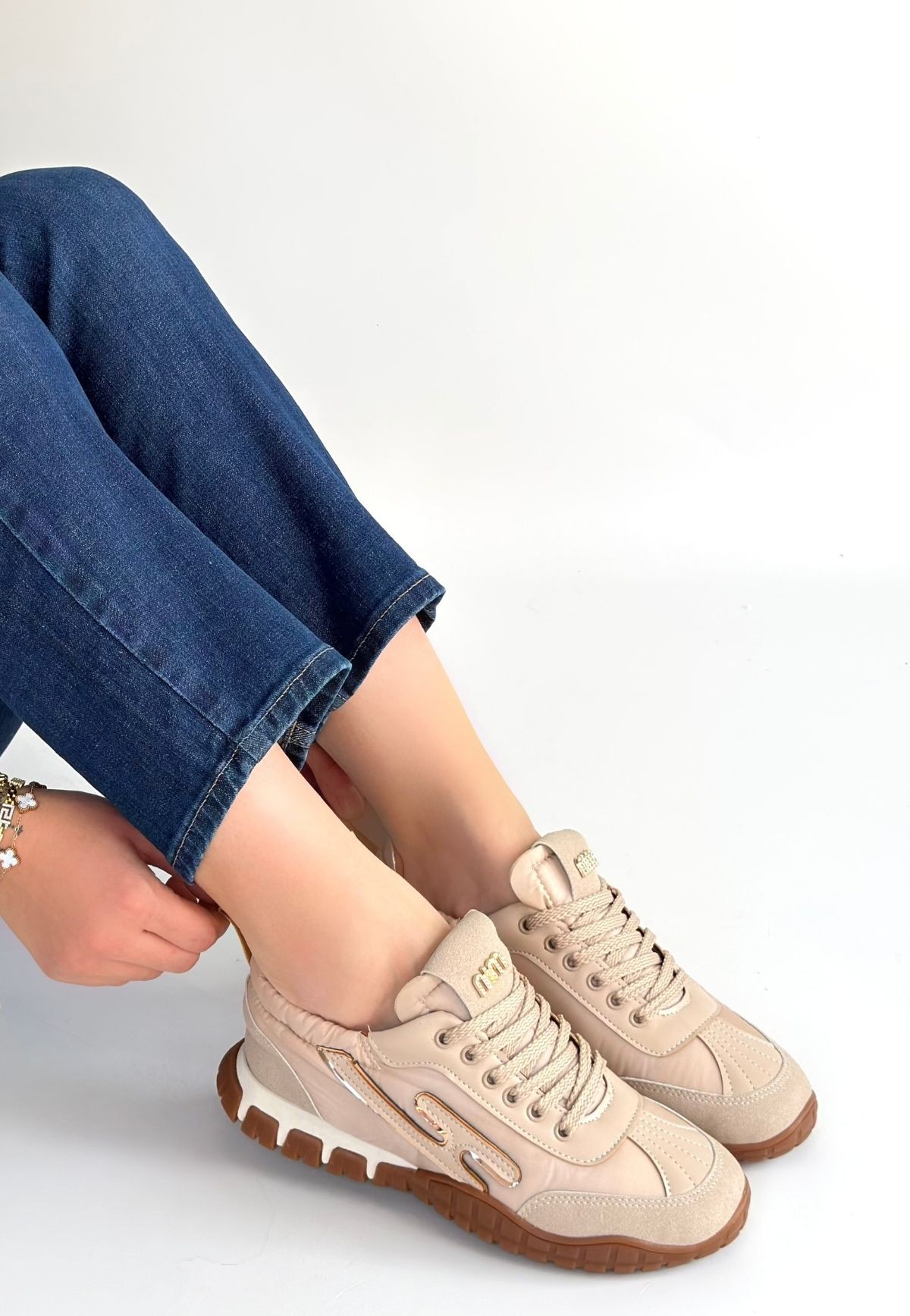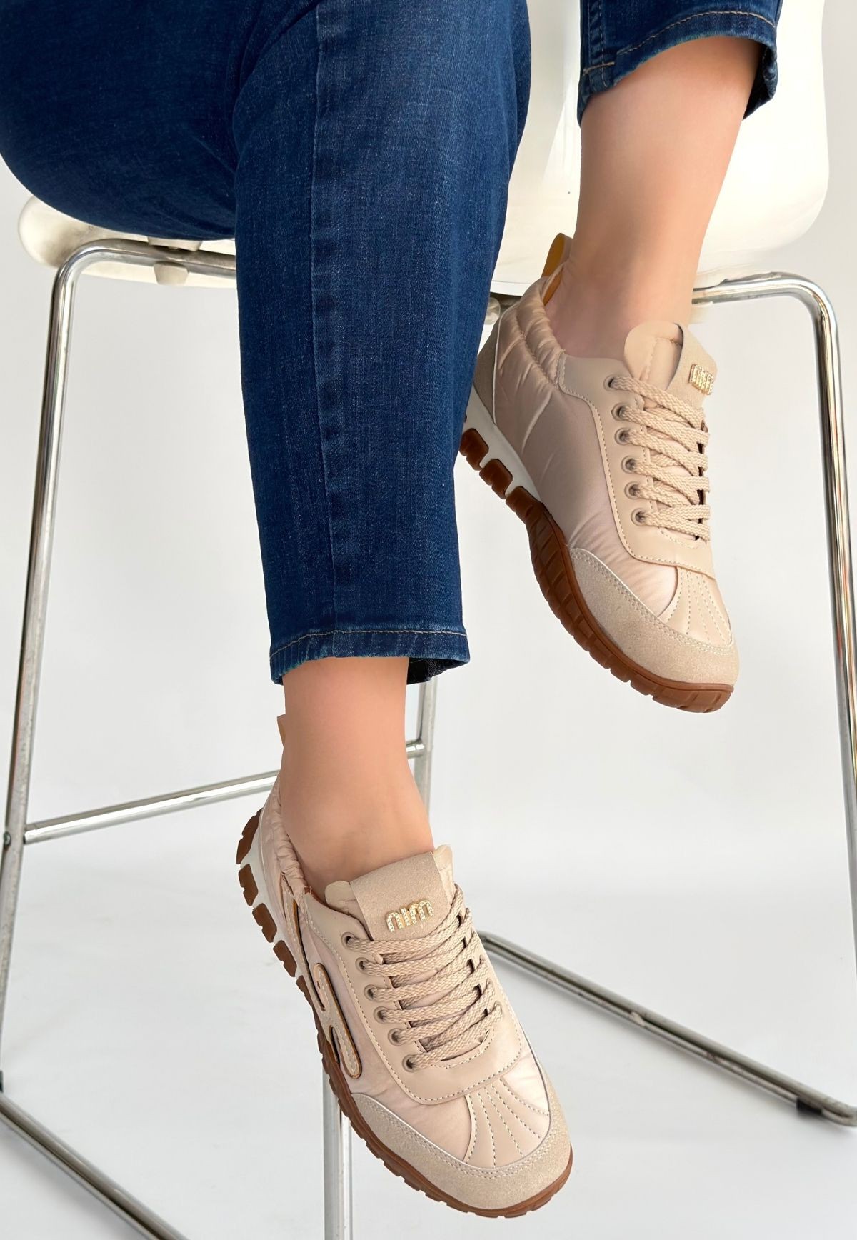 Kadın Spor Huer Bej Nubuk Bağcıklı Spor Ayakkabı
