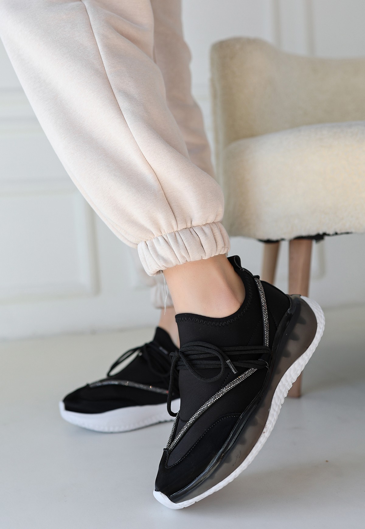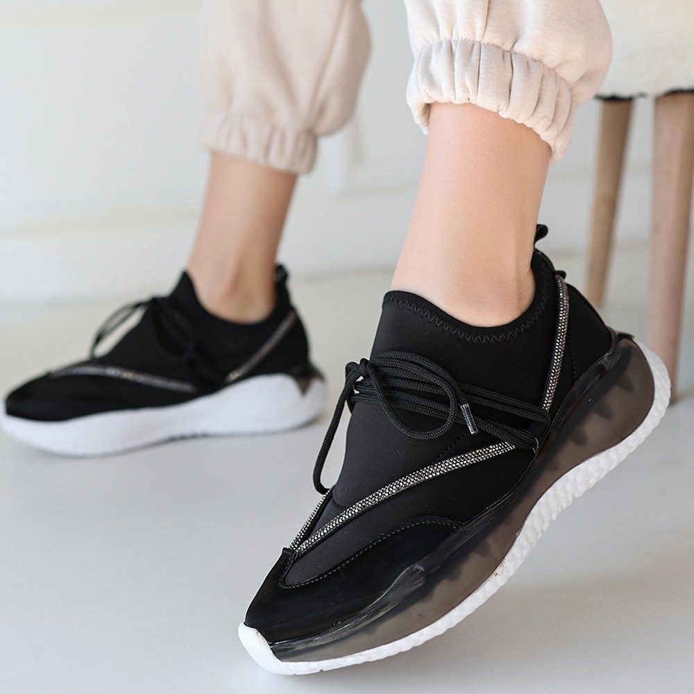 Kadın Spor Liney Siyah Rugan Bağcıklı Spor Ayakkabı