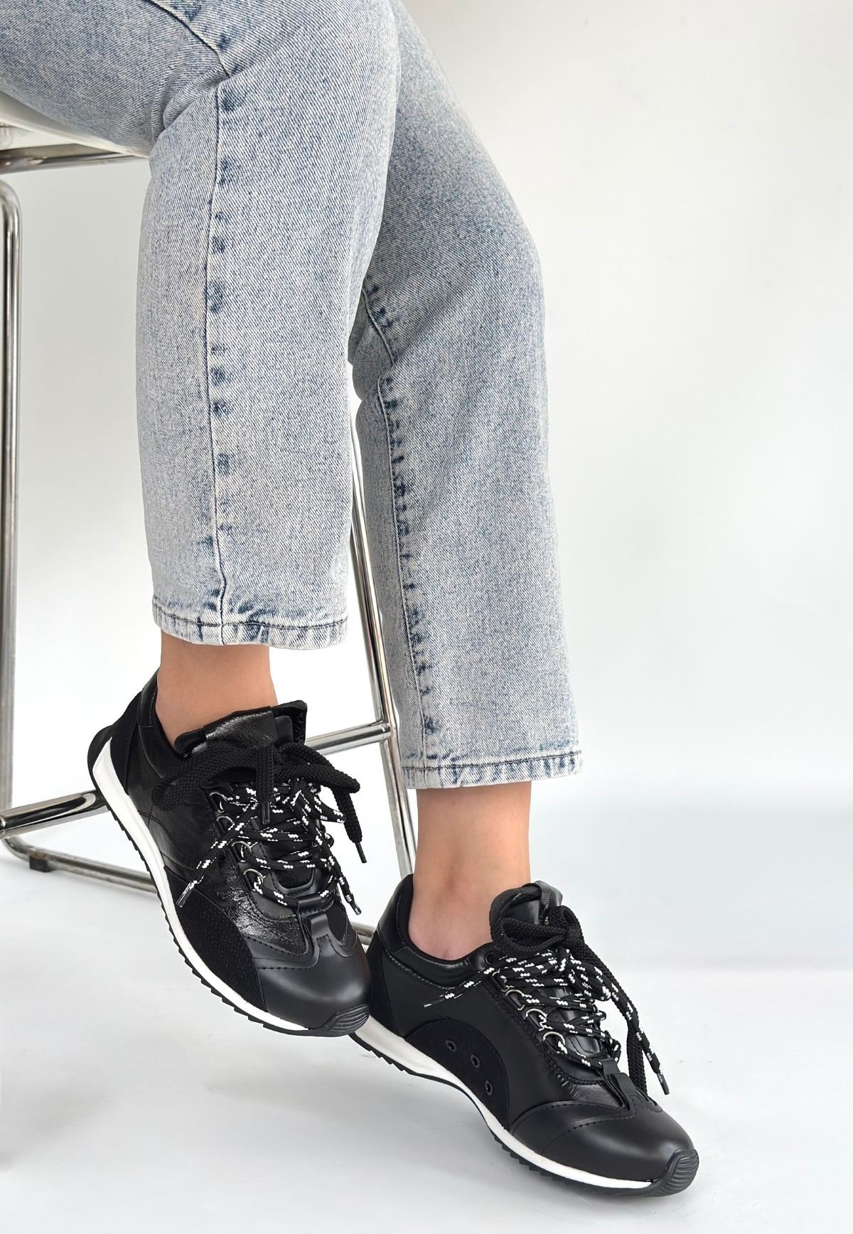 Kadın Spor Ranu Siyah Cilt Paraşüt Detaylı Bağcıklı Spor Ayakkabı