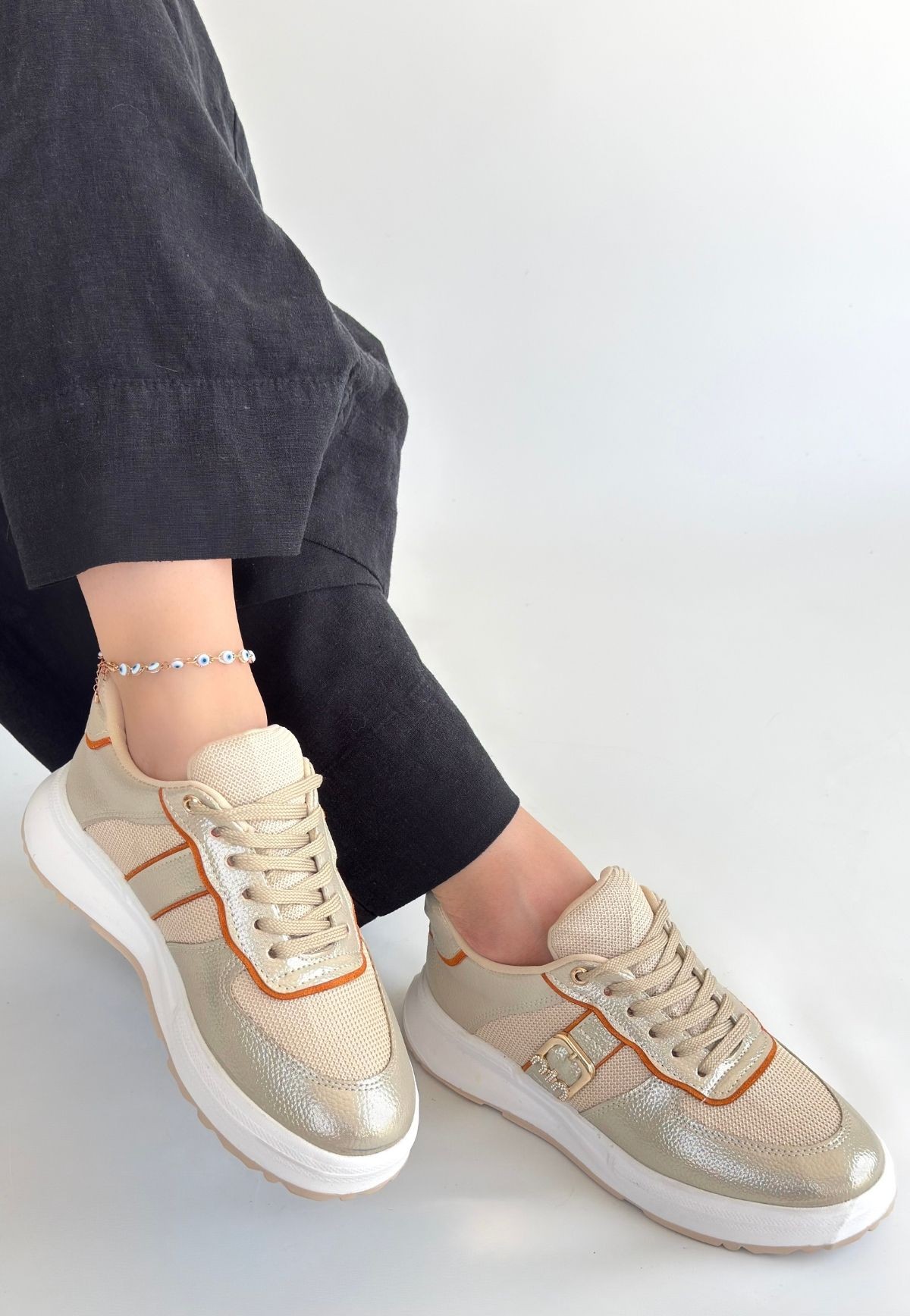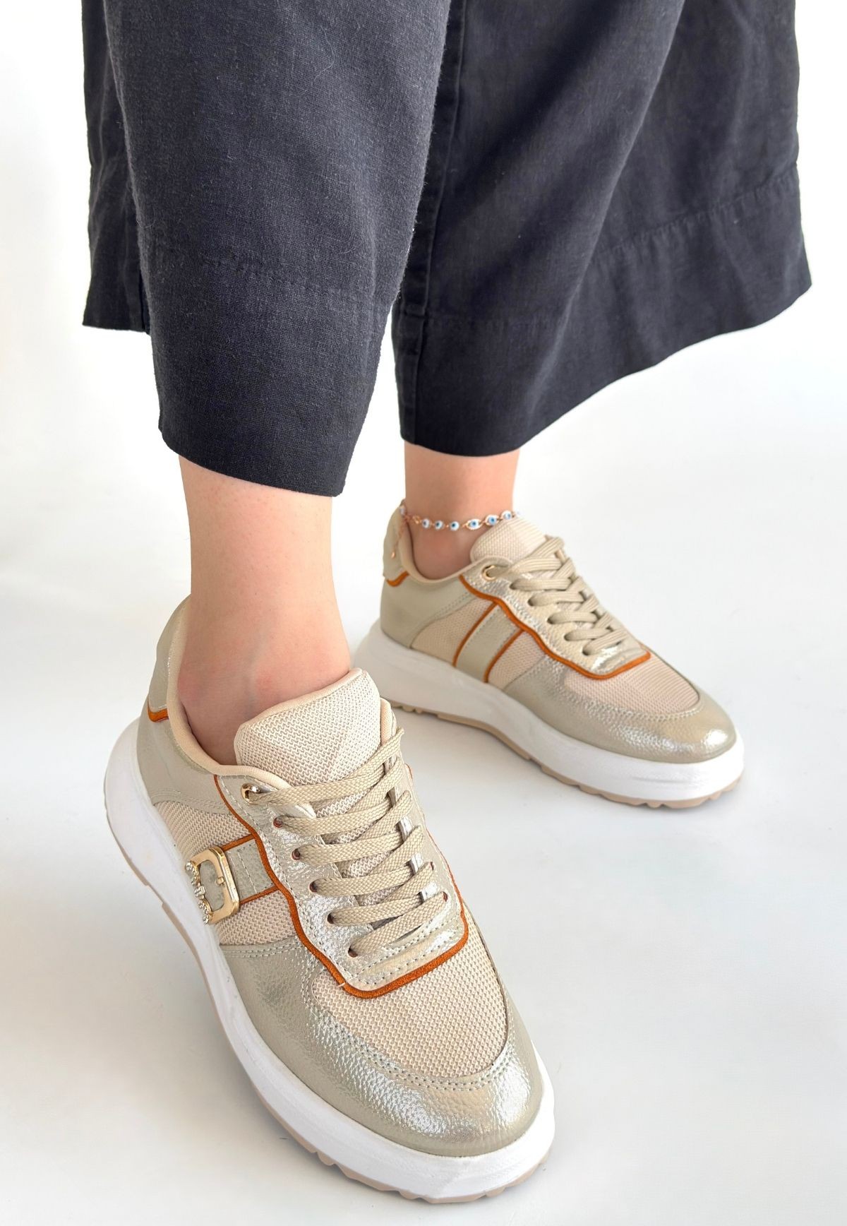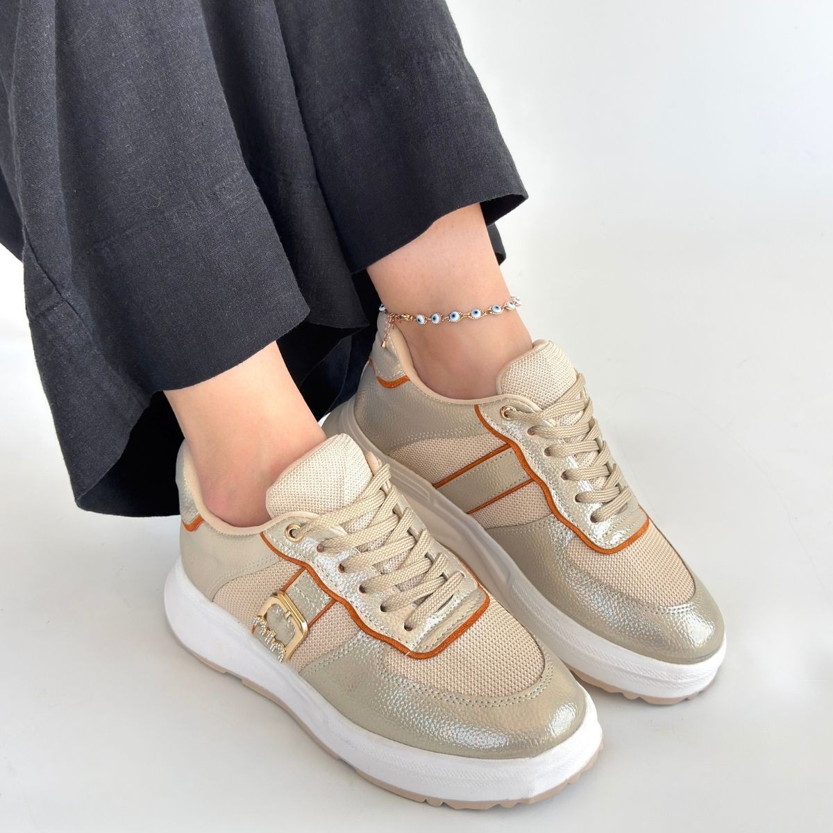 • Tanwe Bej Cilt Bağcıklı Spor Ayakkabı