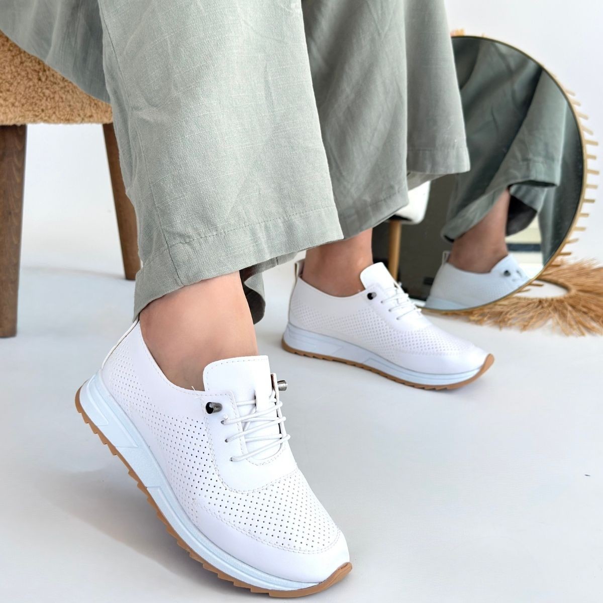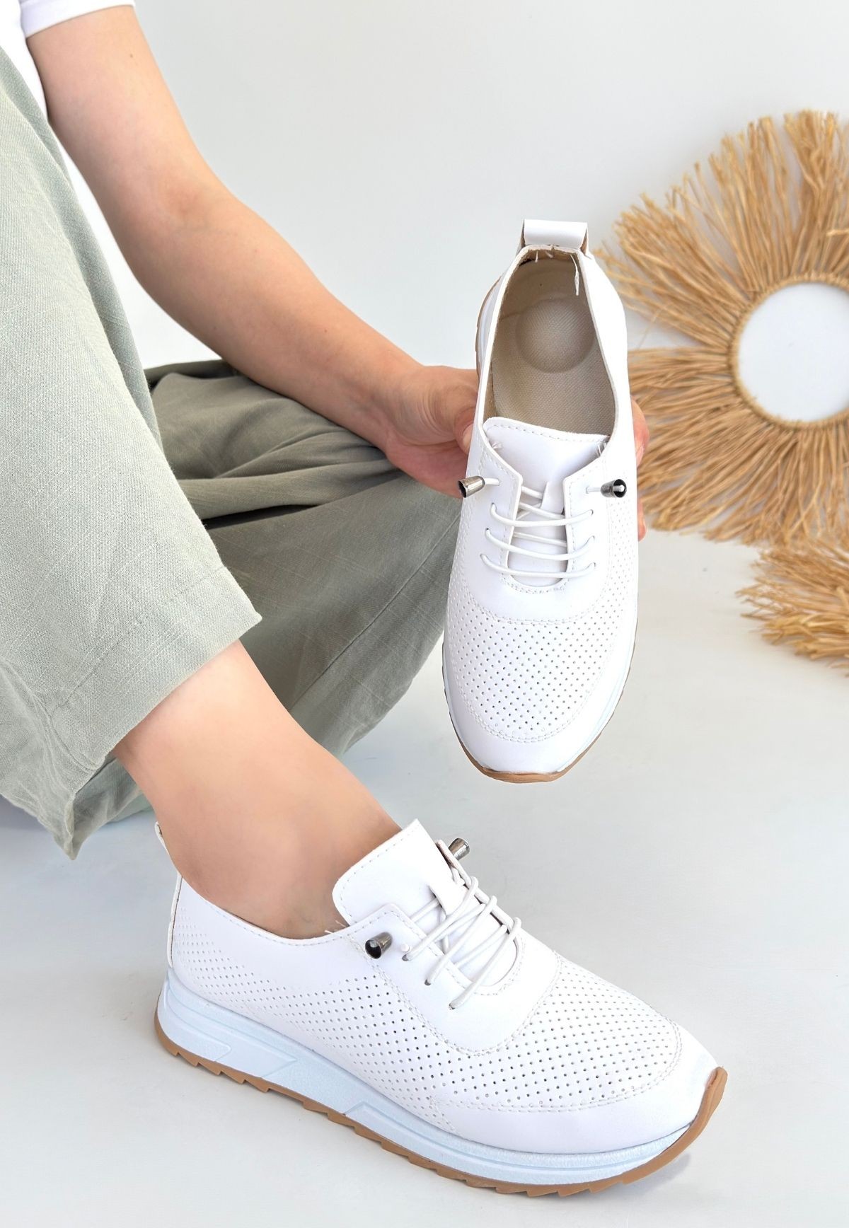 Kadın Spor Tone Beyaz Cilt Bağcıklı Spor Ayakkabı