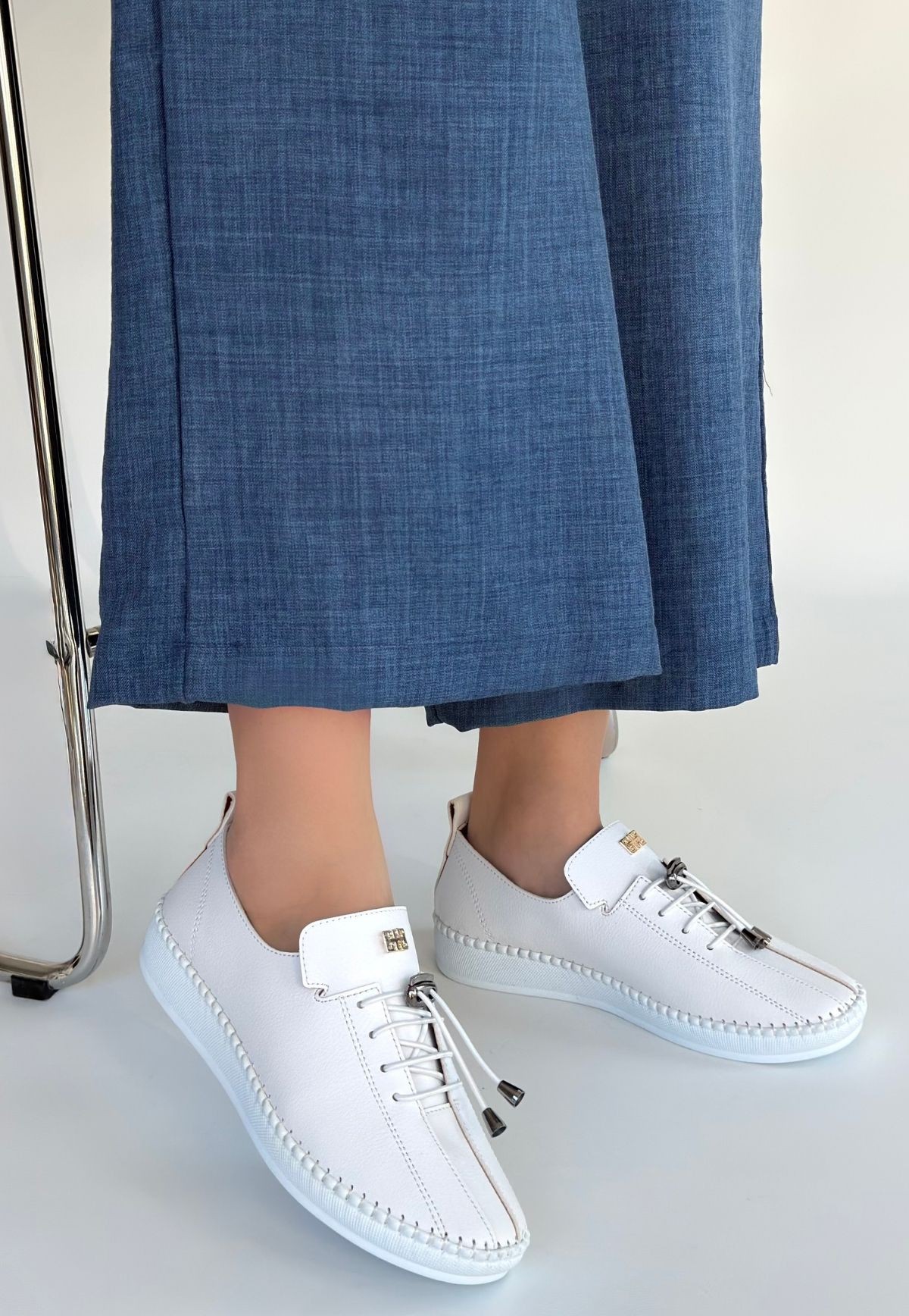 • Warte Beyaz Cilt Bağcıklı Spor Ayakkabı