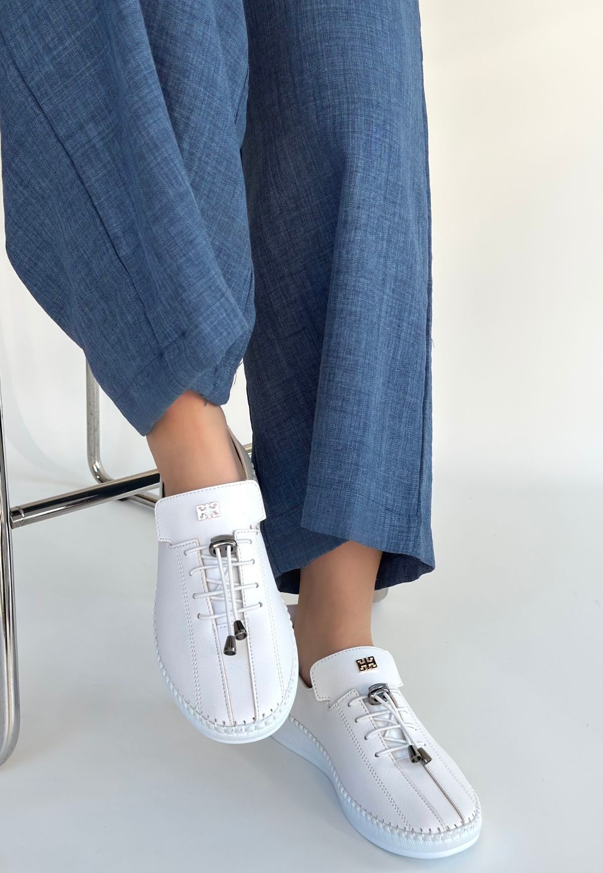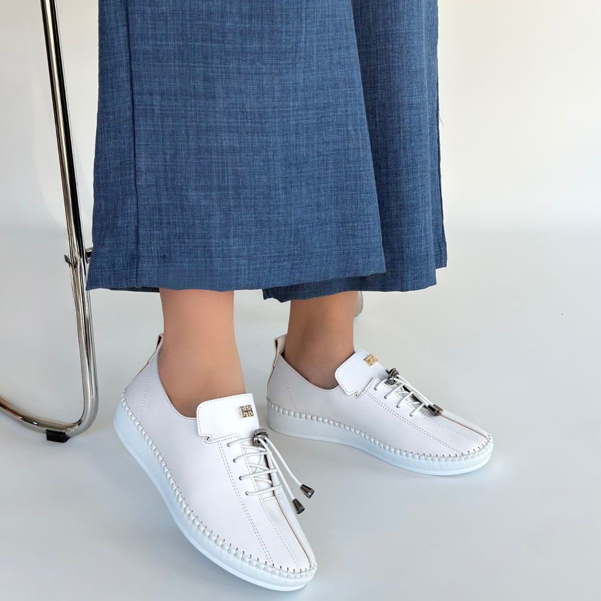 Kadın Spor Warte Beyaz Cilt Bağcıklı Spor Ayakkabı