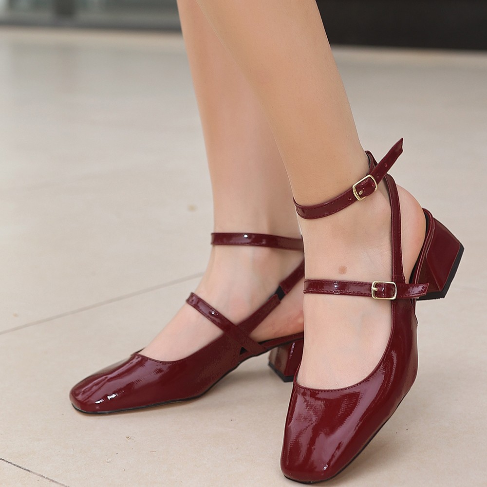 • Karmi Bordo Rugan Topuklu Ayakkabı