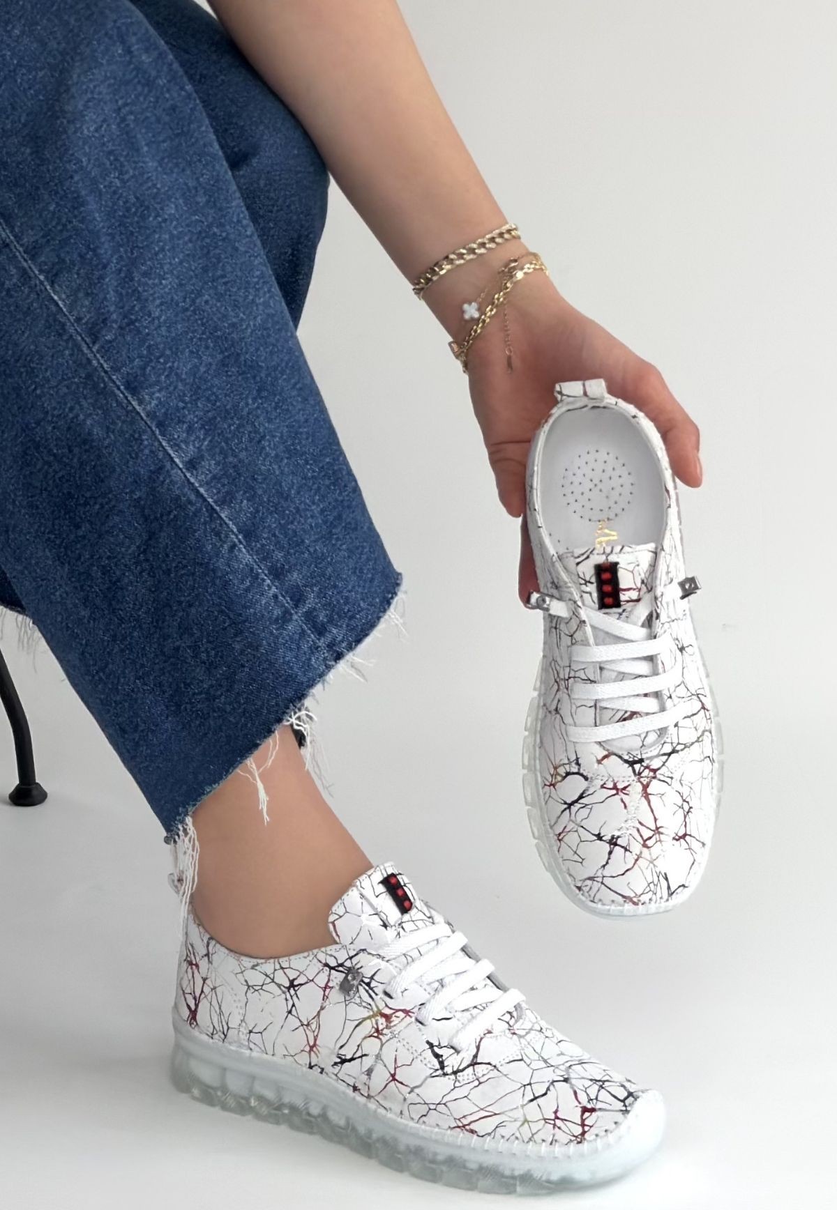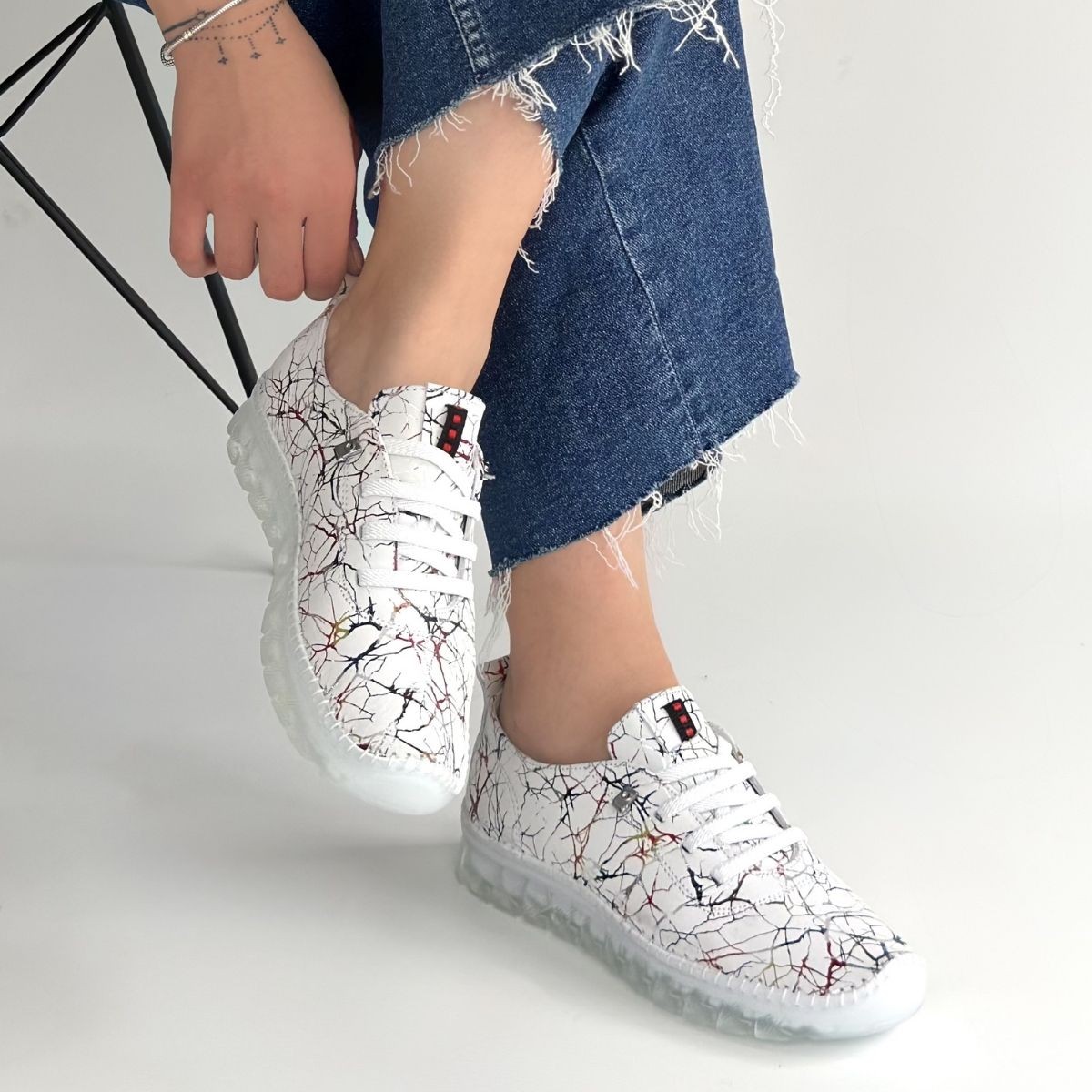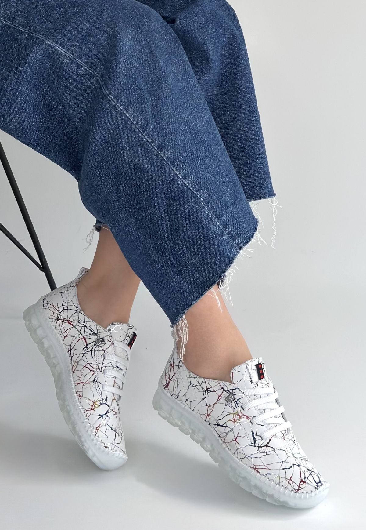 Jiten Beyaz Desenli Deri Bağcıklı Spor Ayakkabı