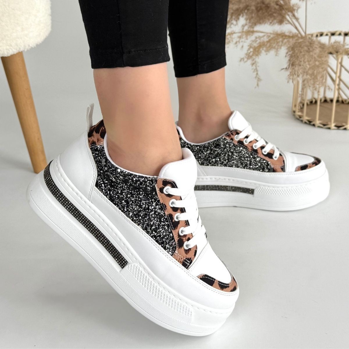 • Lawin Beyaz Cilt Siyah Simli Bağcıklı Spor Ayakkabı