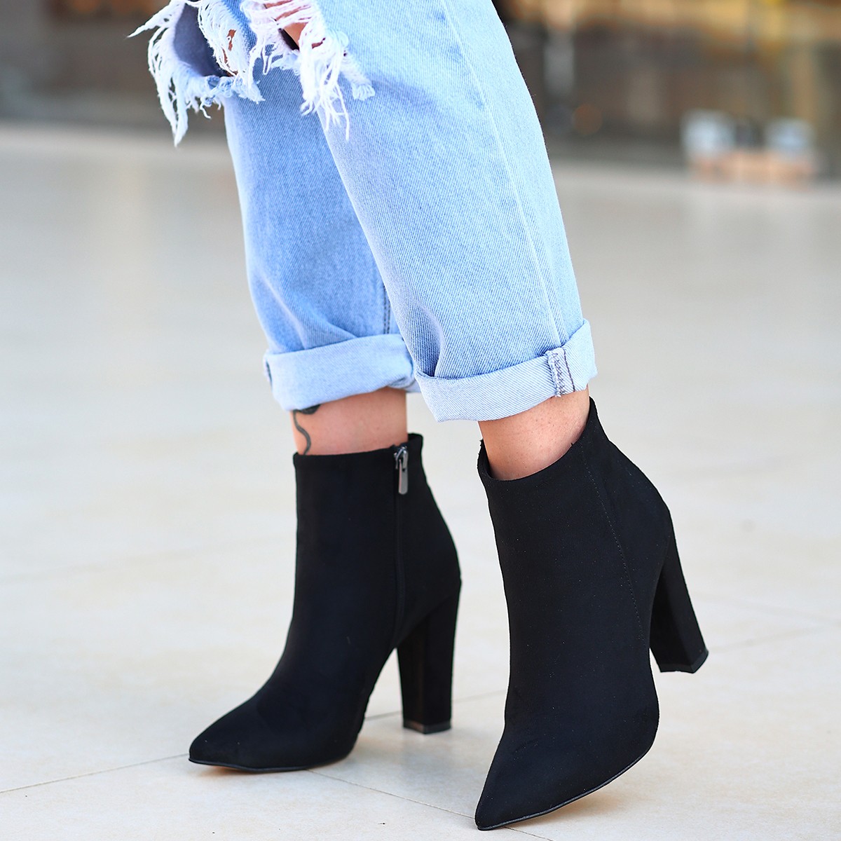• Loora Siyah Süet Topuklu Bot