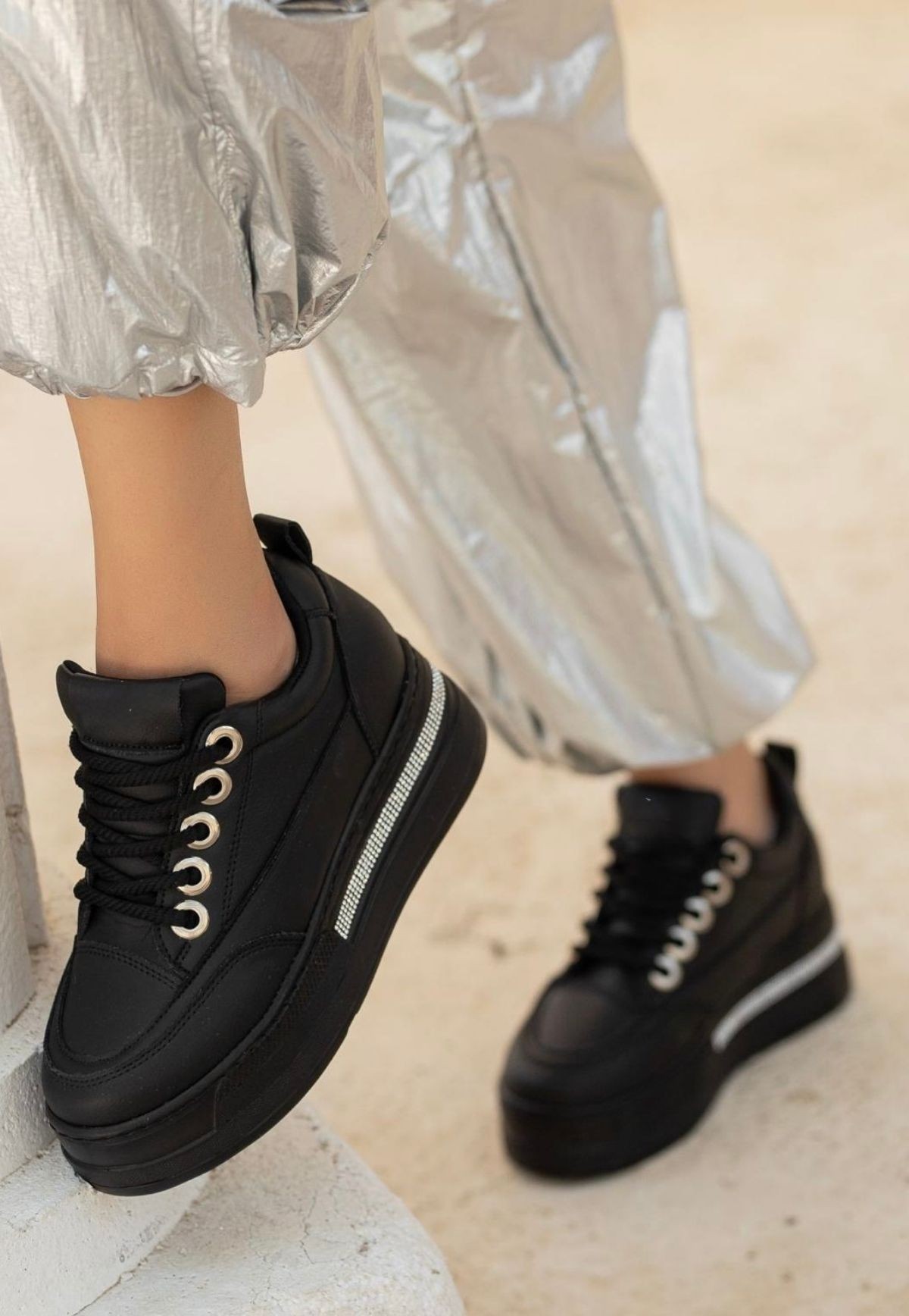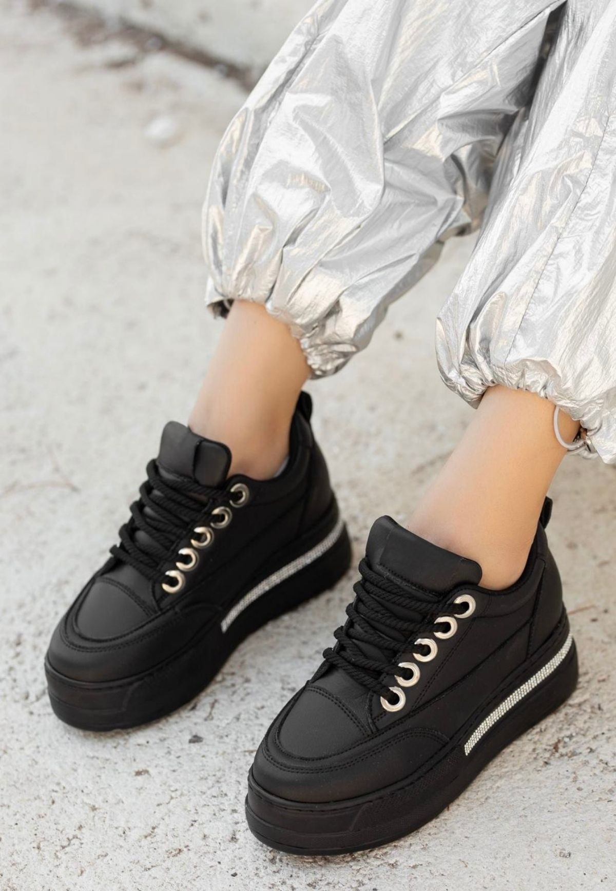 • Lulu Siyah Cilt Bağcıklı Spor Ayakkabı