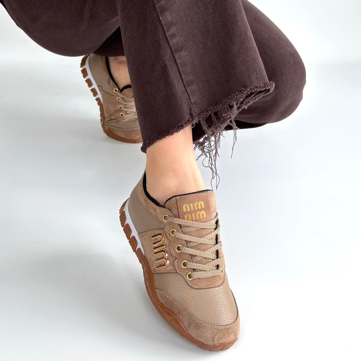 • Marje Vizon Cilt Bağcıklı Spor Ayakkabı