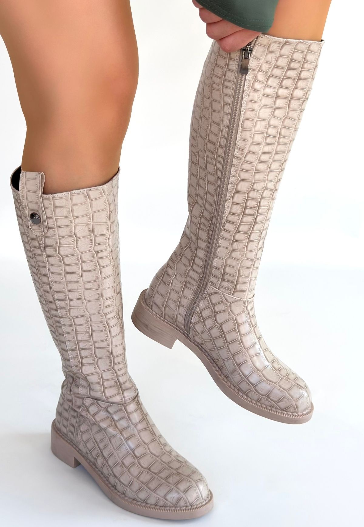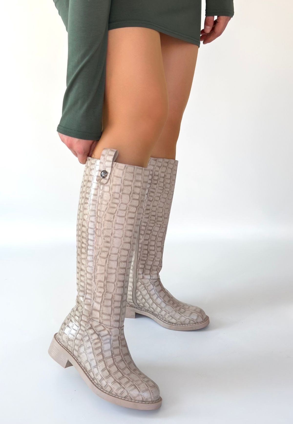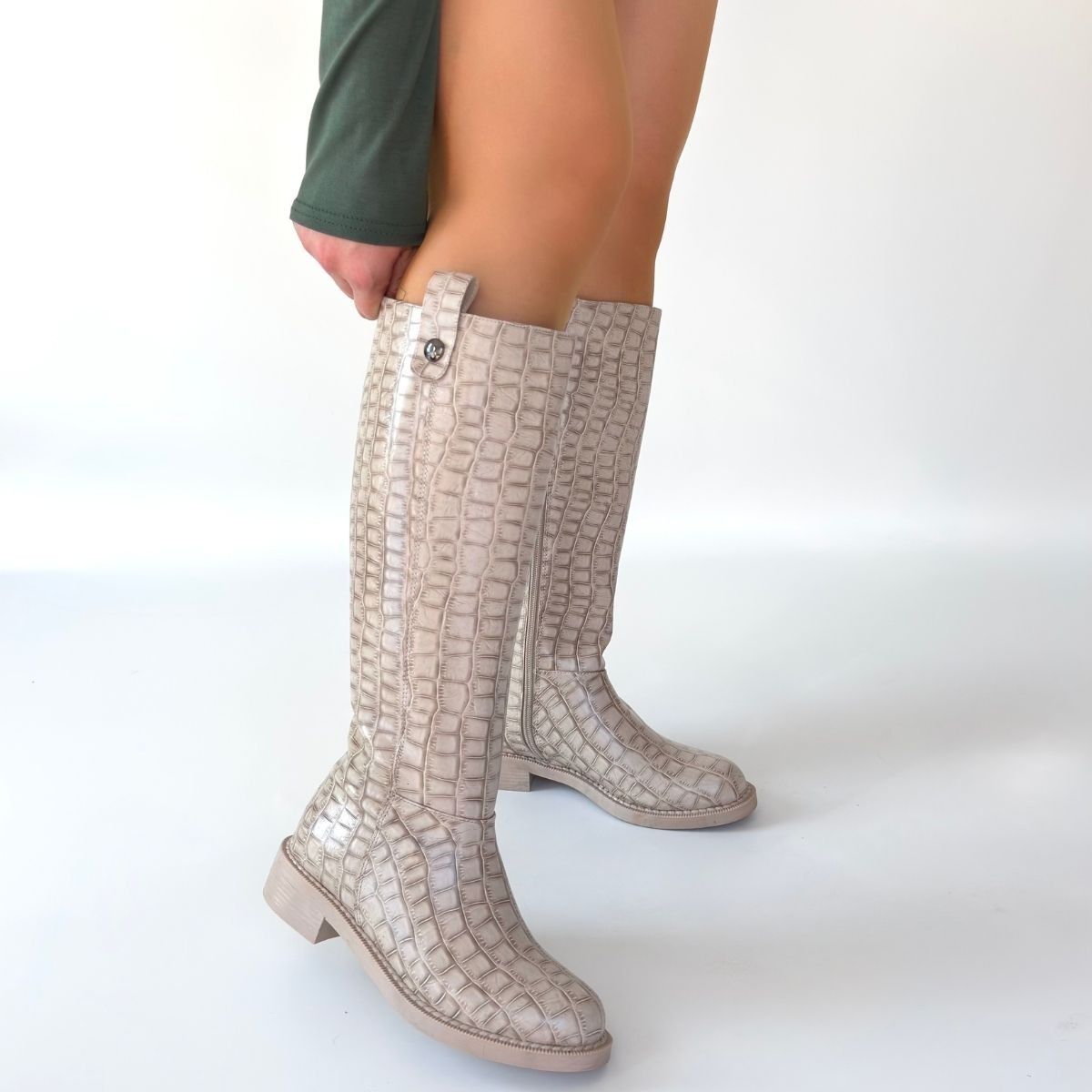 Detay: Topuklu Yandan Fermuarlı Diz Altı Çizme
