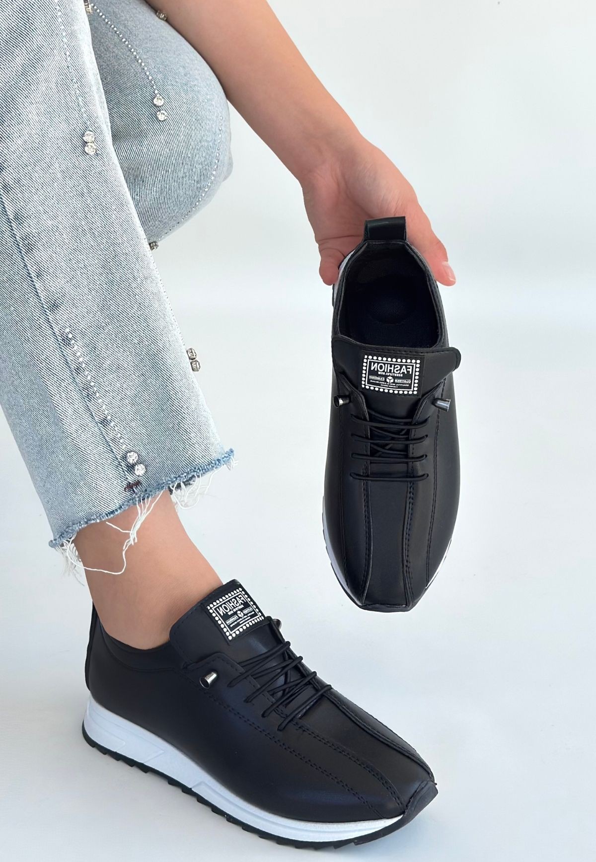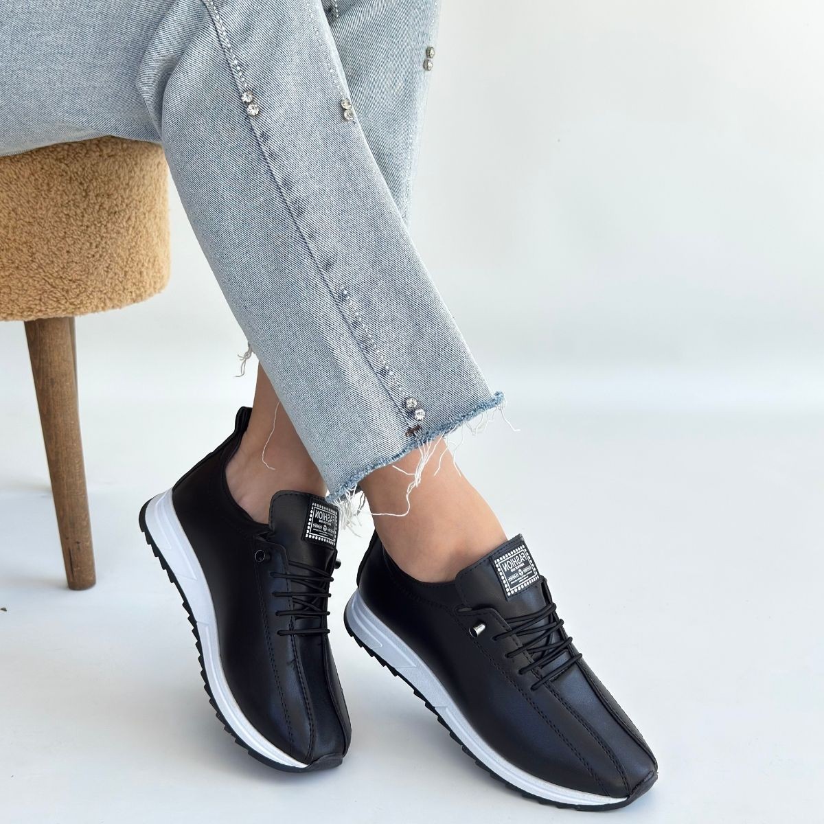• Monya Siyah Cilt Bağcıklı Spor Ayakkabı