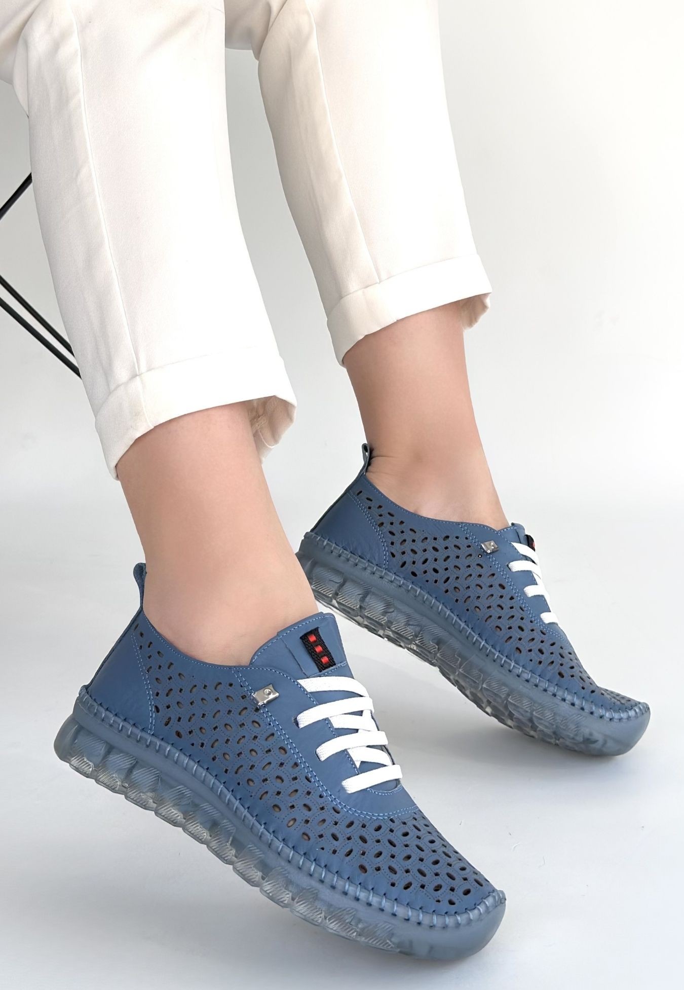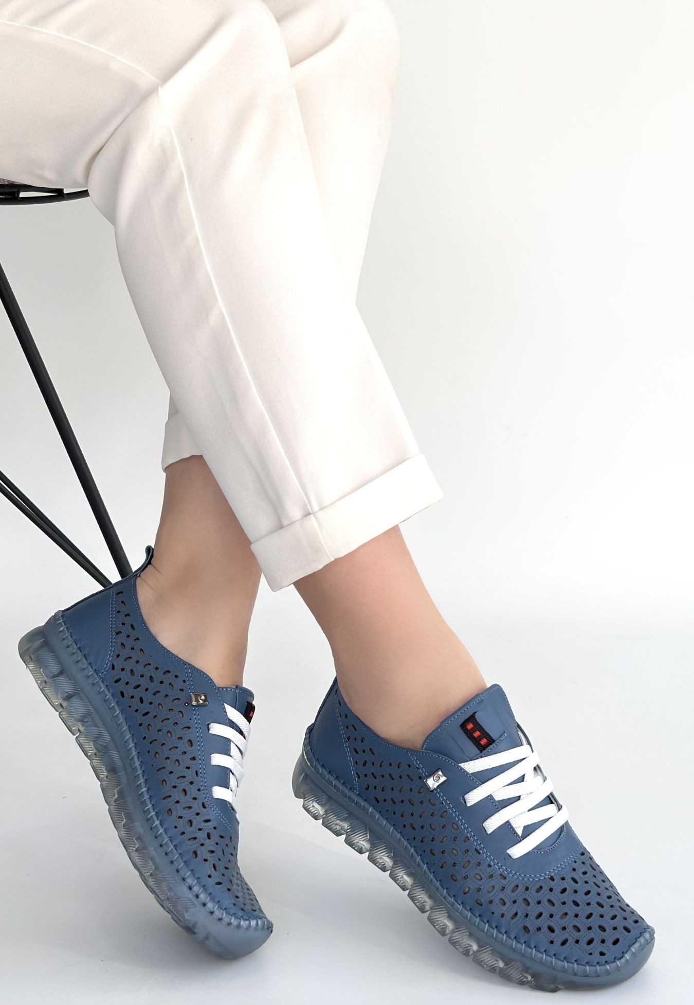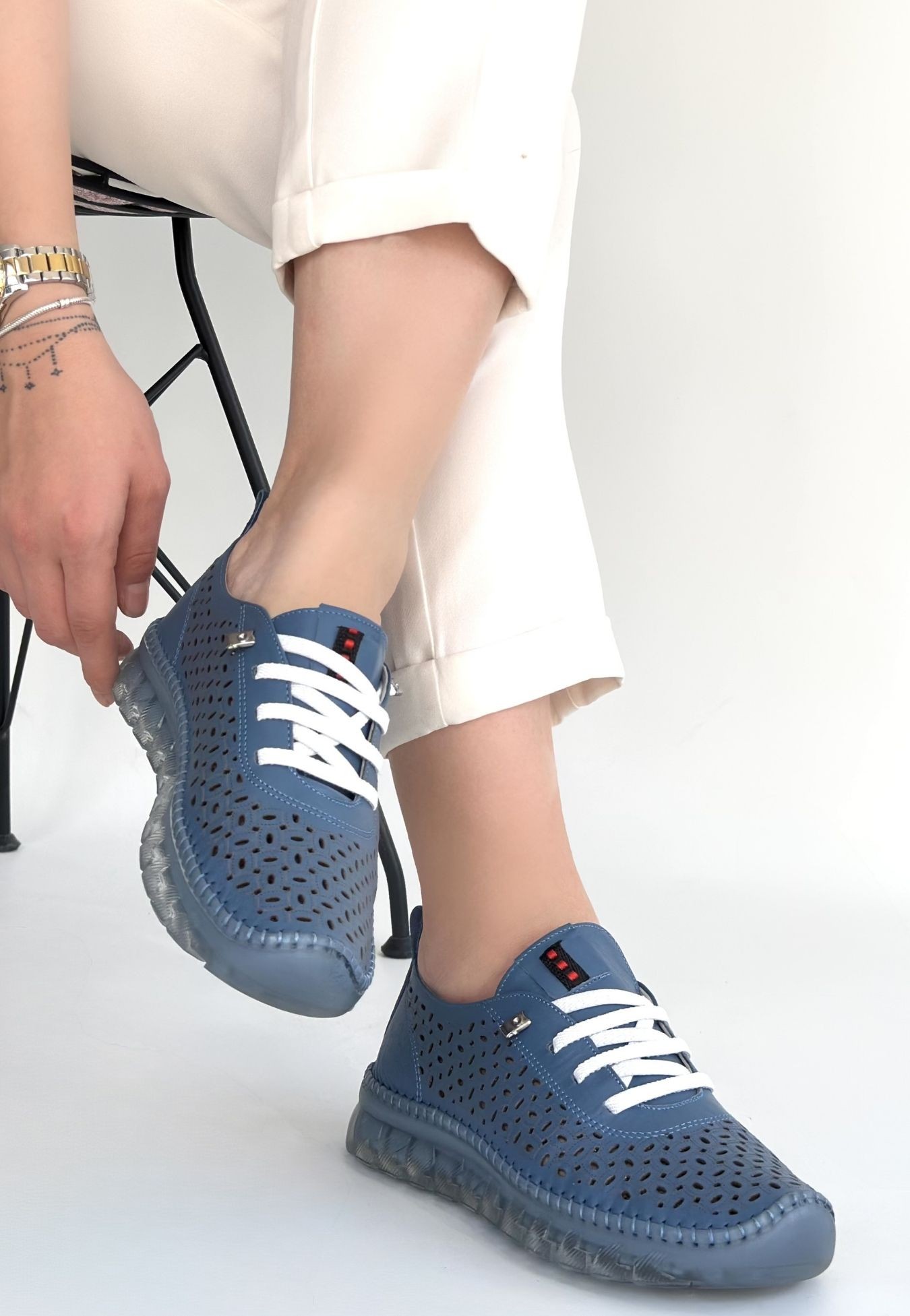 • Otja Mavi Deri Lazerli Bağcıklı Spor Ayakkabı
