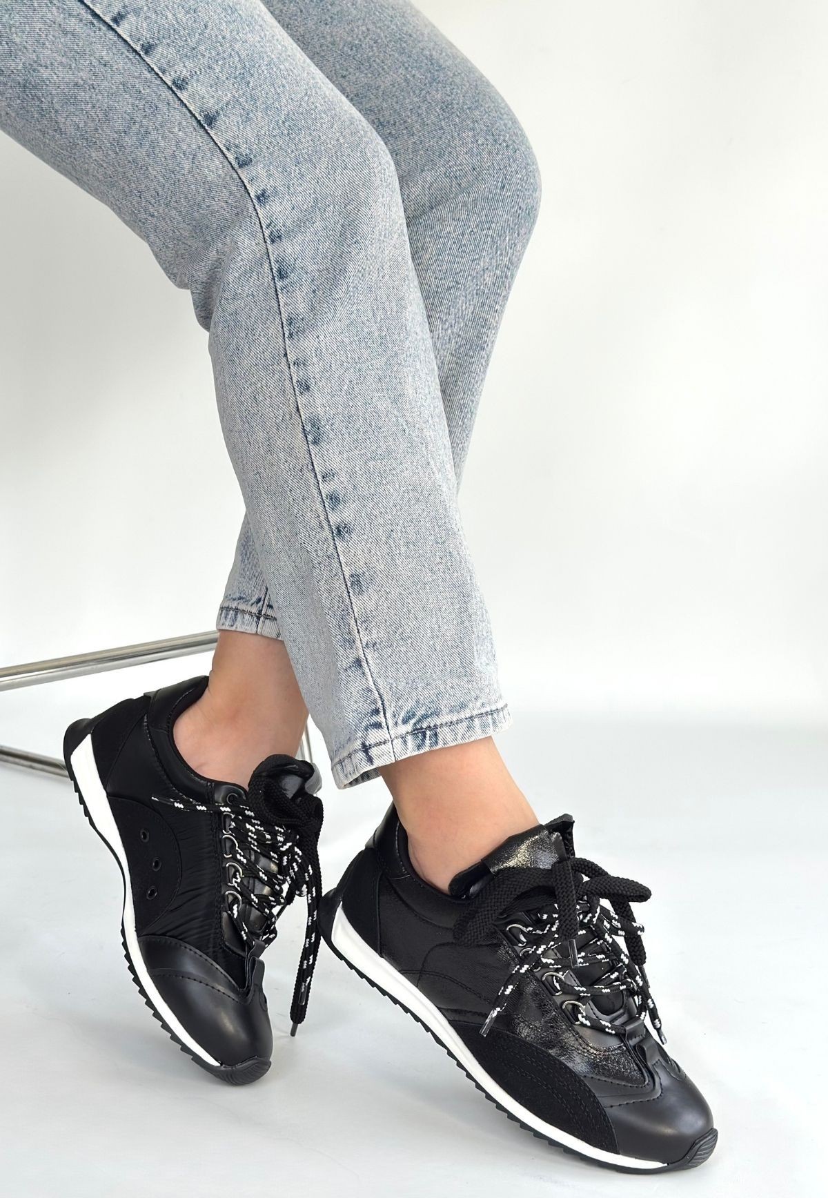 Reat Siyah Cilt Bağcıklı Paraşüt Detaylı Spor Ayakkabı