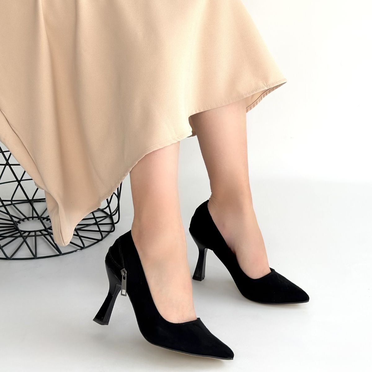 • Retta Siyah Süet Topuklu Ayakkabı