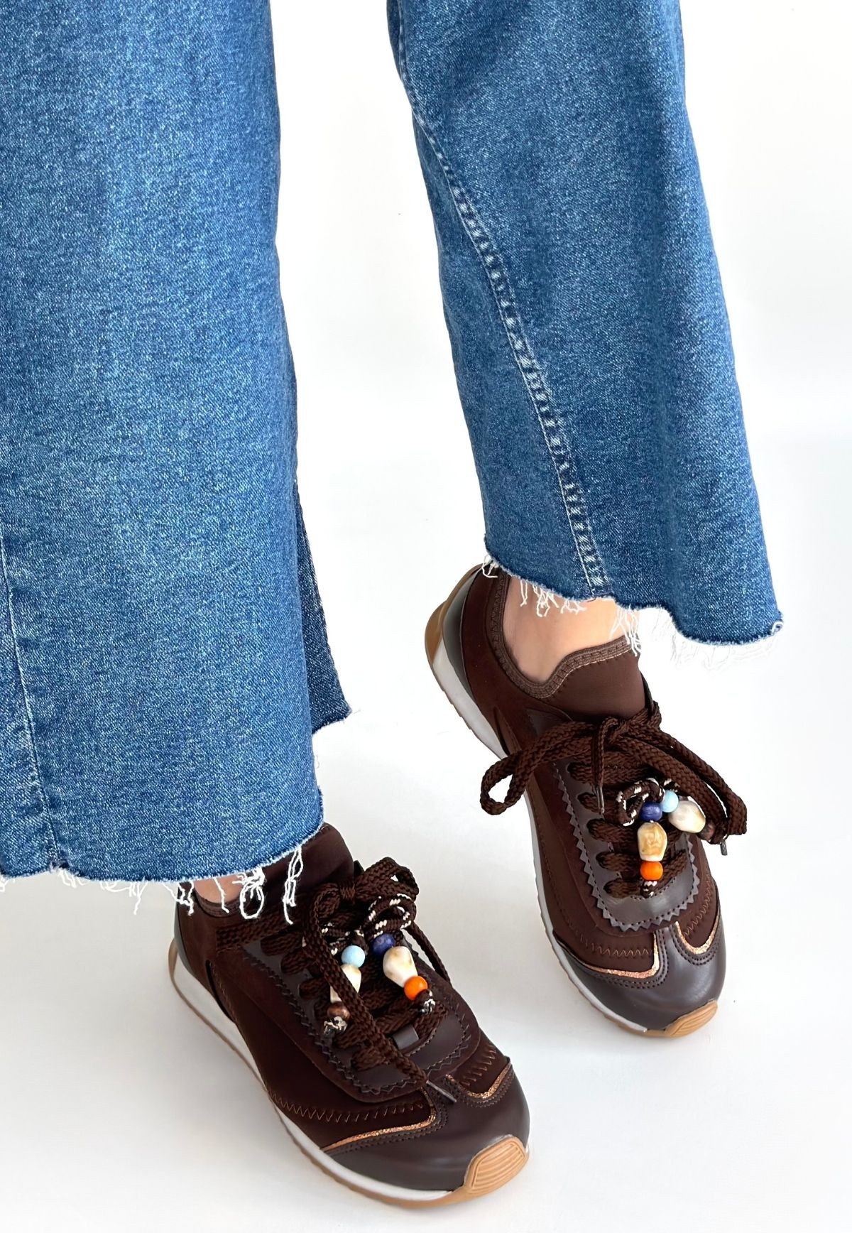Riaf Kahverengi Cilt Bağcıklı Spor Ayakkabı