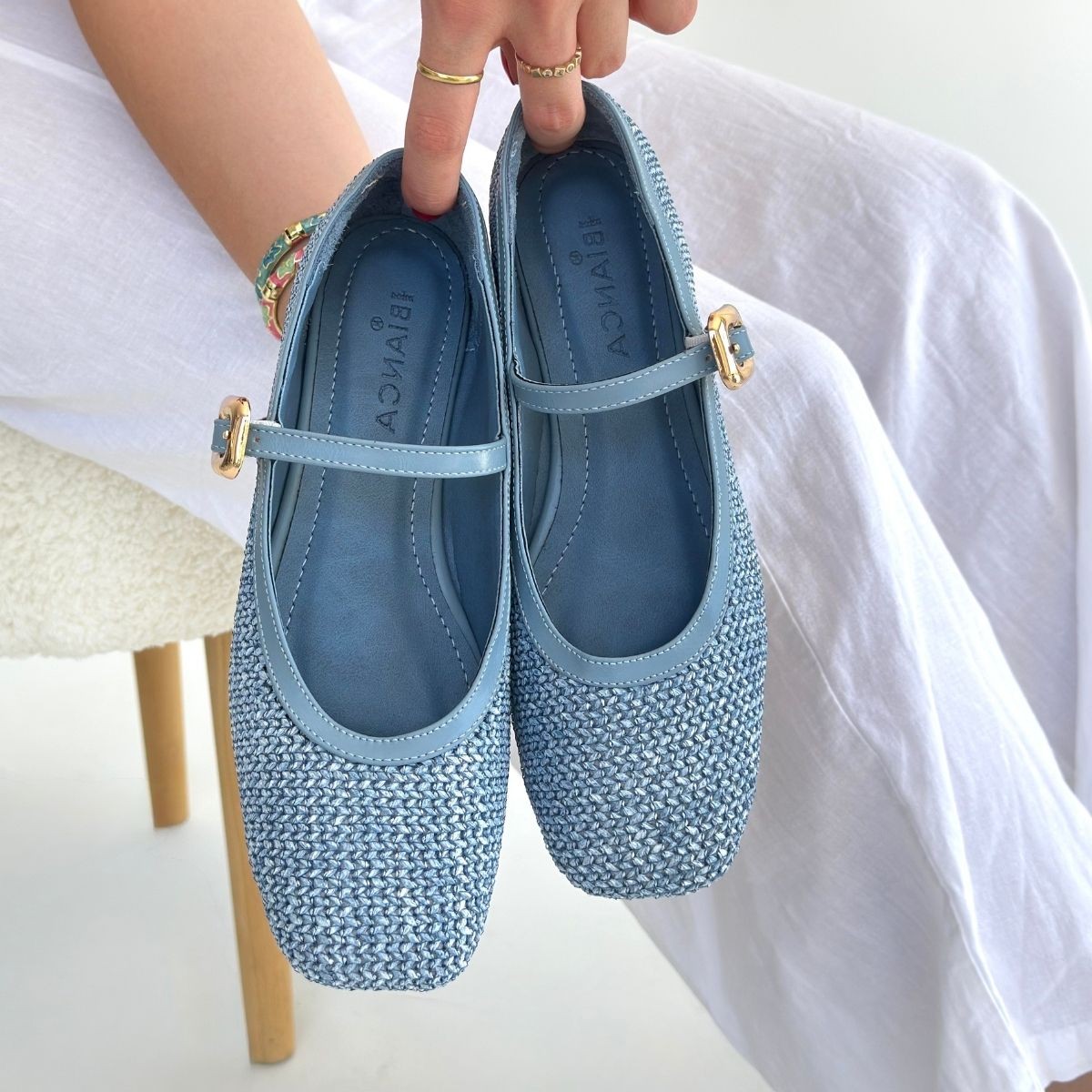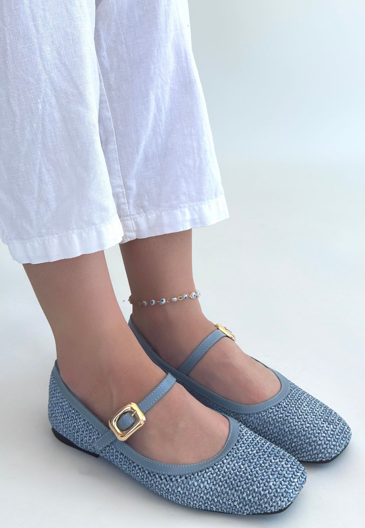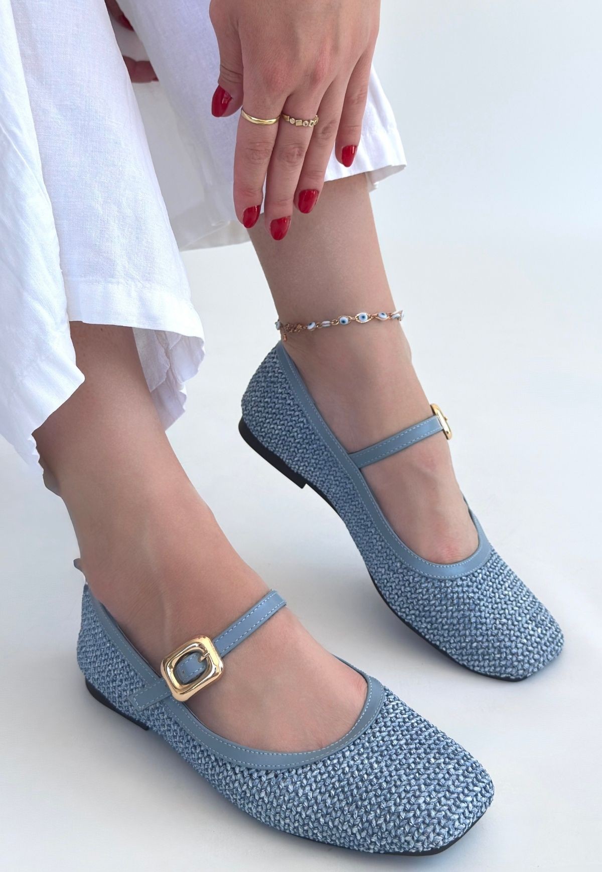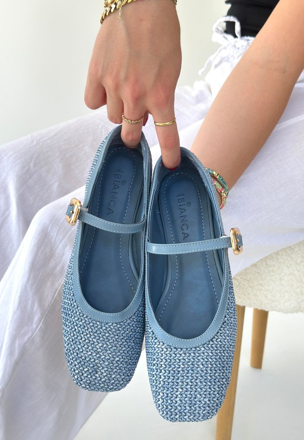 • Rives Mavi Cilt Hasır Dokumalı Babet Ayakkabı