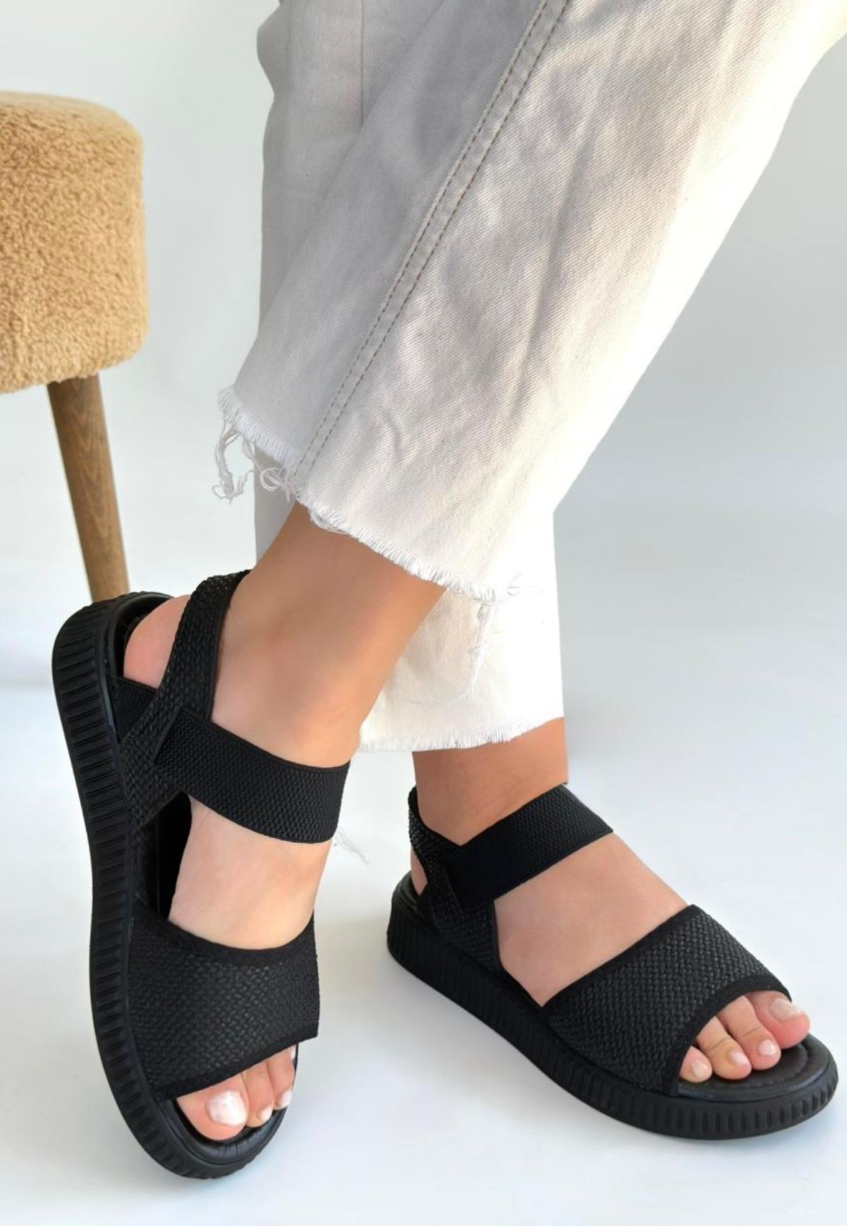 Sandalet Jake Siyah Hasır Cilt Sandalet