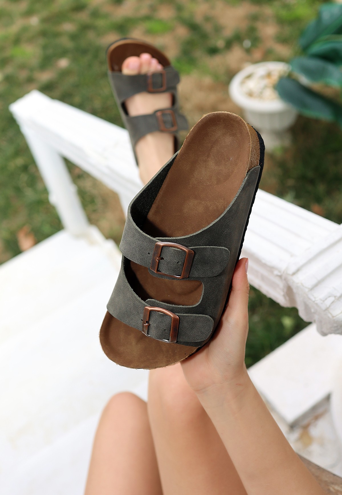 Sandalet Rıno Haki Yeşil Nubuk Terlik