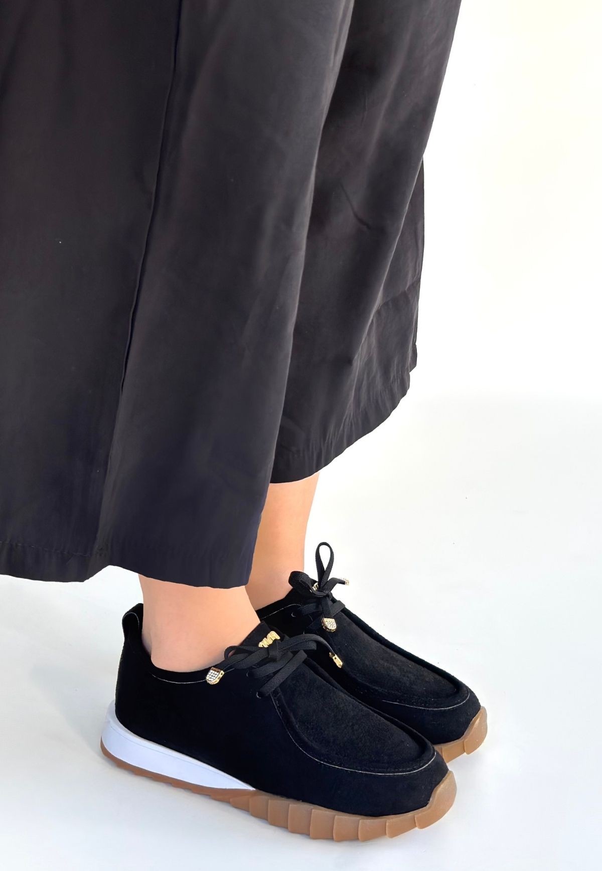 • Sier Siyah Süet Bağcıklı Spor Ayakkabı